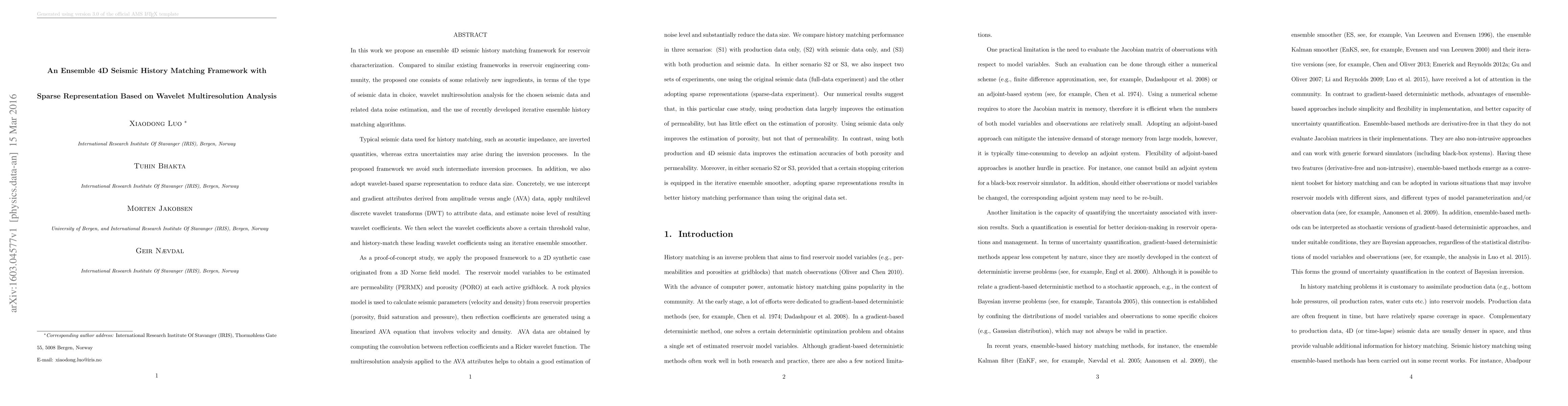 This paper introduces an ensemble 4D seismic history matching framework that leverages wavelet multiresolution analysis for direct use of AVA data, avoiding inversion uncertainties. It employs wavelet-based sparse representation to reduce data size and iteratively matches leading wavelet coefficients for enhanced reservoir characterization.