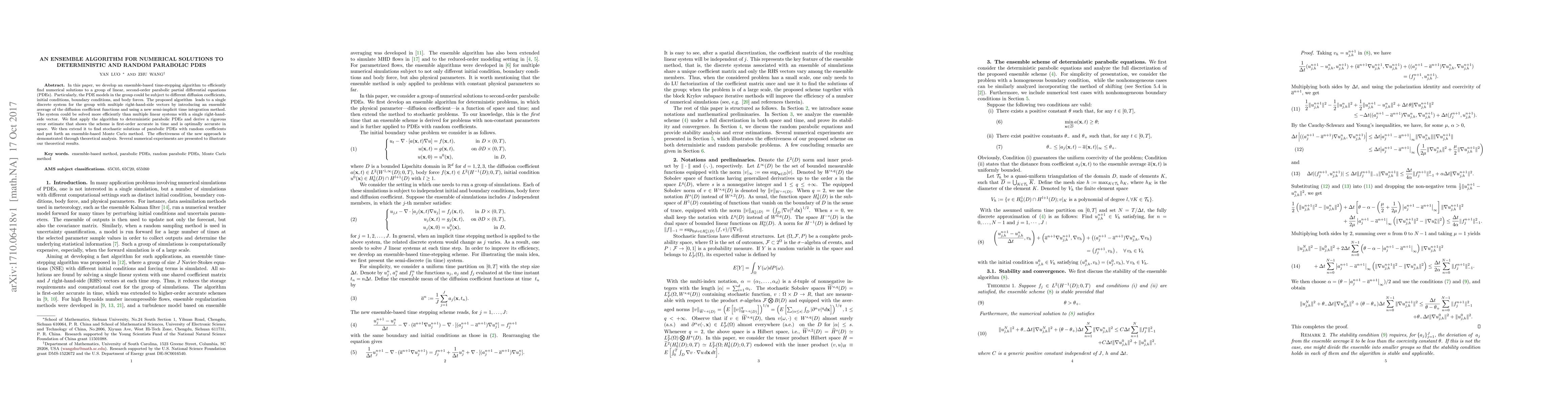This paper proposes an ensemble-based time-stepping algorithm for solving linear, second-order parabolic PDEs, which efficiently handles multiple right-hand-side vectors through an ensemble average. The method is shown to be first-order accurate in time and optimally accurate in space for deterministic PDEs, and is extended to stochastic solutions using an ensemble-based Monte Carlo approach.