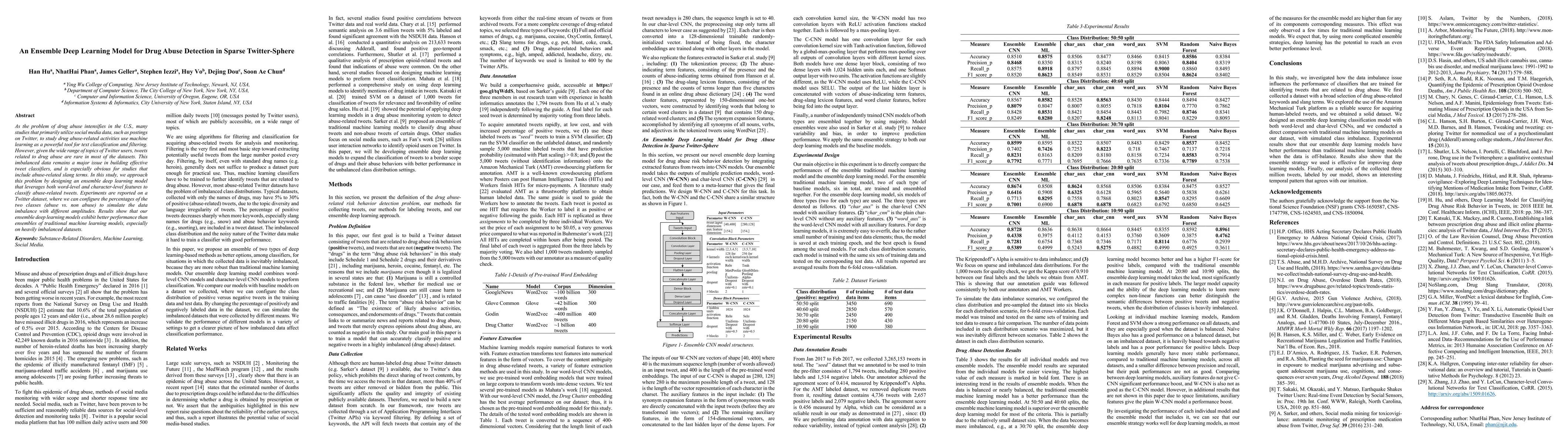 As the problem of drug abuse intensifies in the U.S., many studies that primarily utilize social media data, such as postings on Twitter, to study drug abuse-related activities use machine learning as a powerful tool for text classification and filtering. However, given the wide range of topics of Twitter users, tweets related to drug abuse are rare in most of the datasets. This imbalanced data remains a major issue in building effective tweet classifiers, and is especially obvious for studies that include abuse-related slang terms. In this study, we approach this problem by designing an ensemble deep learning model that leverages both word-level and character-level features to classify abuse-related tweets. Experiments are reported on a Twitter dataset, where we can configure the percentages of the two classes (abuse vs. non abuse) to simulate the data imbalance with different amplitudes. Results show that our ensemble deep learning models exhibit better performance than ensembles of traditional machine learning models, especially on heavily imbalanced datasets.