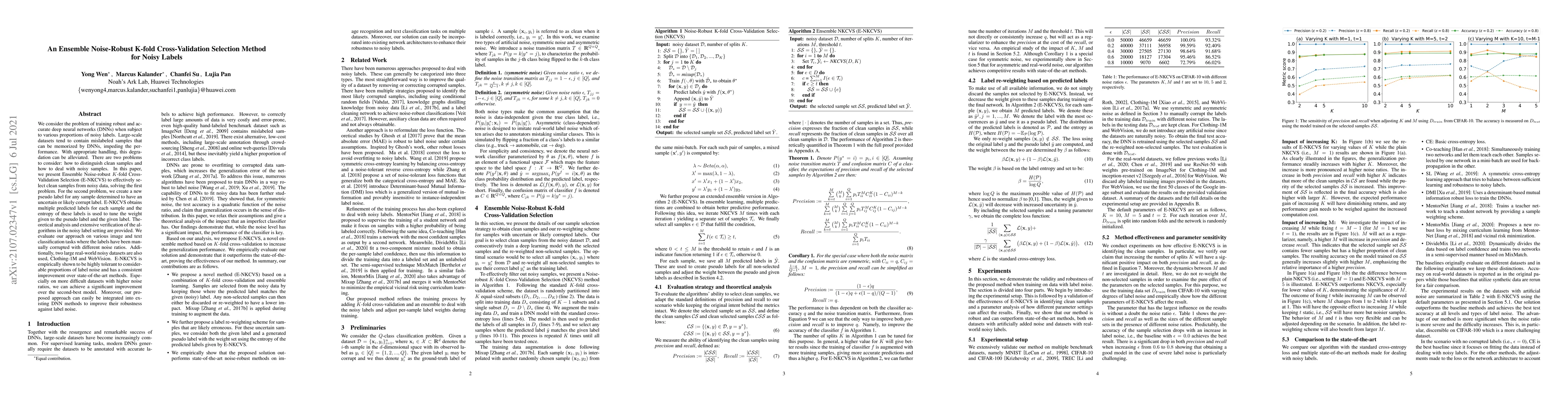 The paper proposes Ensemble Noise-Robust K-fold Cross-Validation Selection (E-NKCVS) for selecting clean samples from noisy data in deep neural networks (DNNs). E-NKCVS uses K-fold cross-validation, mixup data augmentation, and an ensemble approach to handle noisy labels effectively.