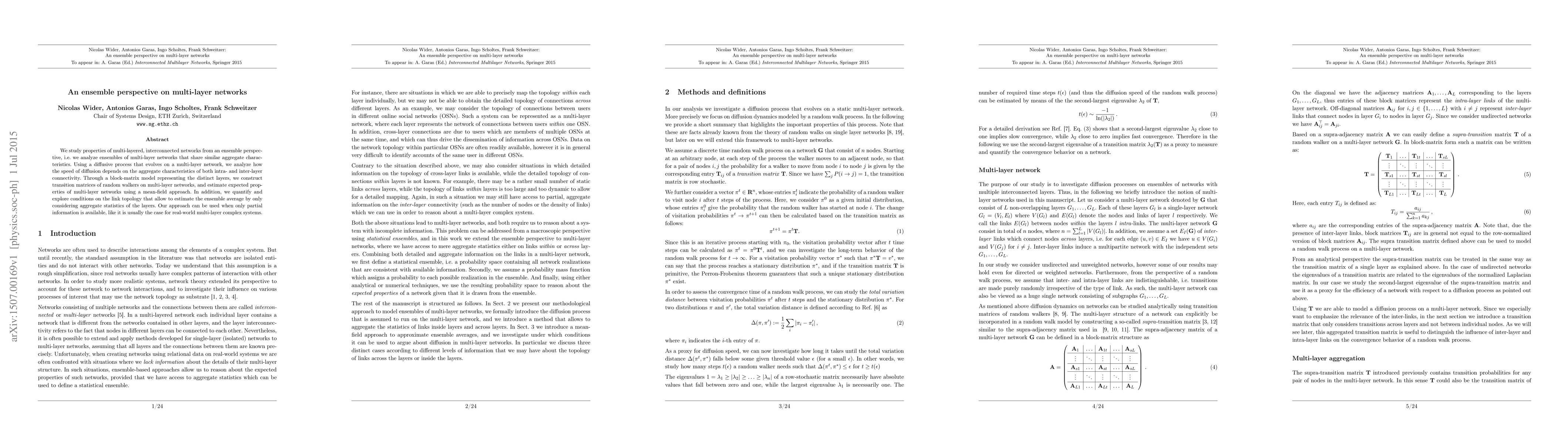 This research paper analyzes multi-layer networks from an ensemble perspective to understand how diffusion speed depends on network characteristics. It proposes a method for estimating ensemble averages using only aggregate statistics.