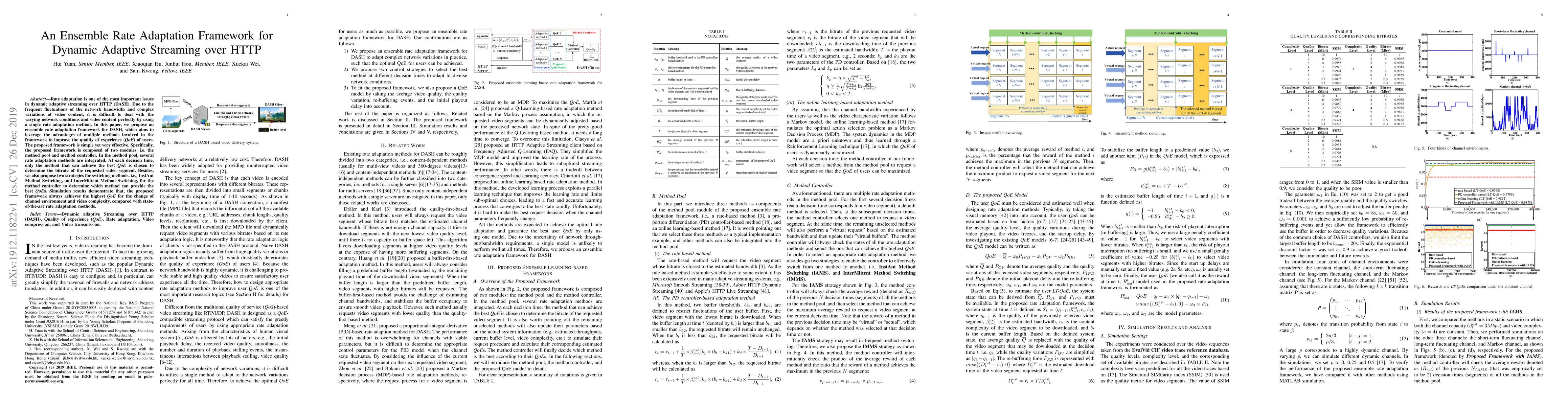This paper proposes an ensemble rate adaptation framework for dynamic adaptive streaming over HTTP (DASH) to improve user experience by integrating multiple rate adaptation methods. The framework selects the best method at each decision time to determine the optimal bitrate, employing strategies for switching between methods to adapt to varying network and content conditions, achieving superior quality of experience compared to existing methods.