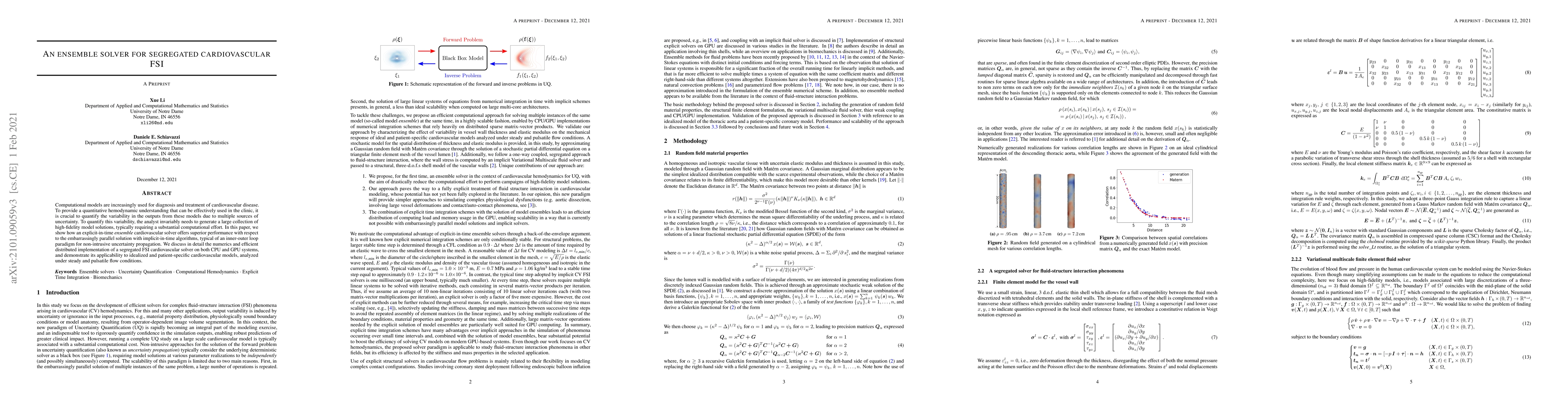 Computational models are increasingly used for diagnosis and treatment of cardiovascular disease. To provide a quantitative hemodynamic understanding that can be effectively used in the clinic, it is crucial to quantify the variability in the outputs from these models due to multiple sources of uncertainty. To quantify this variability, the analyst invariably needs to generate a large collection of high-fidelity model solutions, typically requiring a substantial computational effort. In this paper, we show how an explicit-in-time ensemble cardiovascular solver offers superior performance with respect to the embarrassingly parallel solution with implicit-in-time algorithms, typical of an inner-outer loop paradigm for non-intrusive uncertainty propagation. We discuss in detail the numerics and efficient distributed implementation of a segregated FSI cardiovascular solver on both CPU and GPU systems, and demonstrate its applicability to idealized and patient-specific cardiovascular models, analyzed under steady and pulsatile flow conditions.