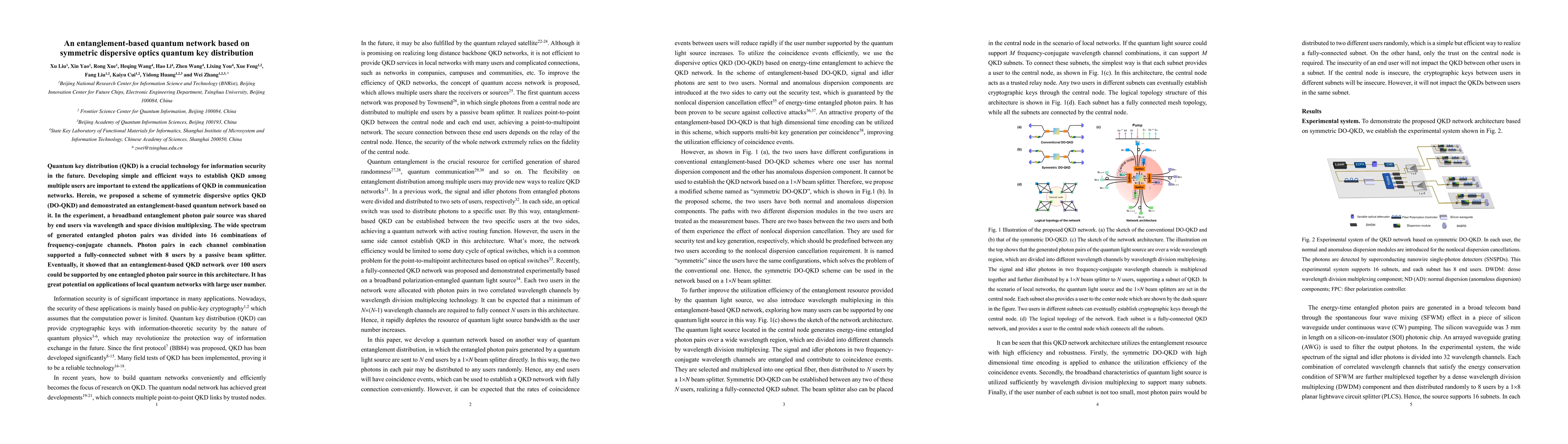 This paper proposes a symmetric dispersive optics quantum key distribution (DO-QKD) scheme for establishing a scalable entanglement-based quantum network. The experiment demonstrated a network supporting 100 users via wavelength and space division multiplexing, indicating significant potential for large-scale local quantum networks.