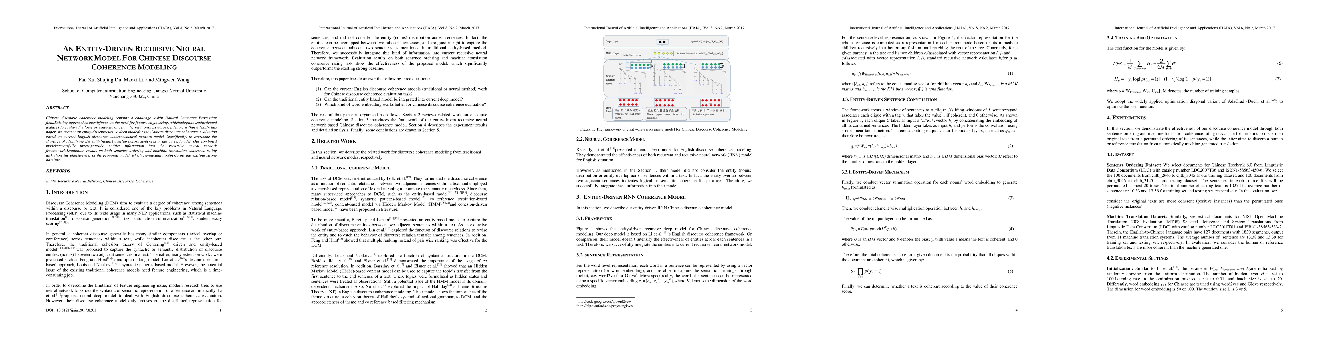 This paper introduces an entity-driven recursive neural network model for Chinese discourse coherence modeling, addressing the limitations of existing feature-based approaches. The proposed model integrates entity information into the recursive neural network, significantly improving coherence evaluation performance over strong baselines in sentence ordering and machine translation tasks.