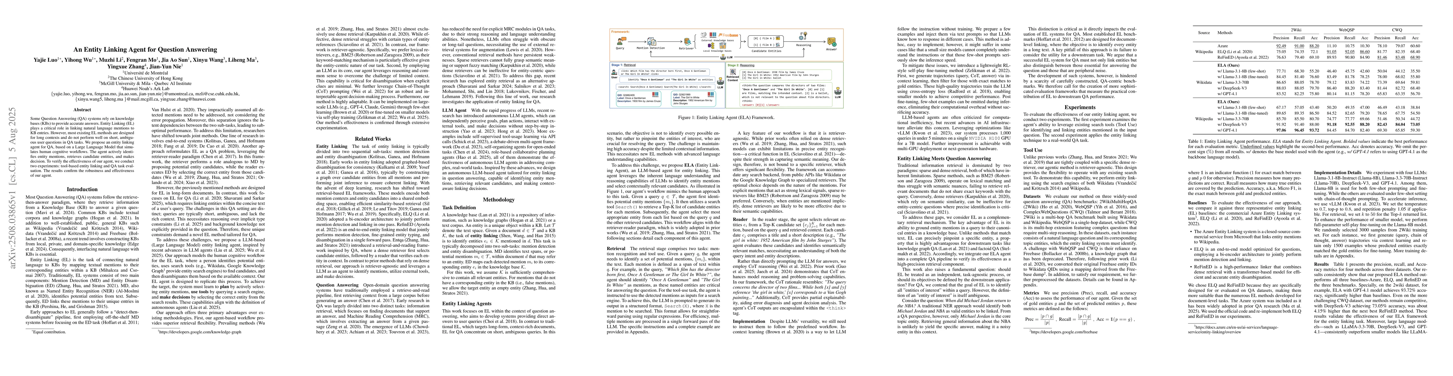 Some Question Answering (QA) systems rely on knowledge bases (KBs) to provide accurate answers. Entity Linking (EL) plays a critical role in linking natural language mentions to KB entries. However, most existing EL methods are designed for long contexts and do not perform well on short, ambiguous user questions in QA tasks. We propose an entity linking agent for QA, based on a Large Language Model that simulates human cognitive workflows. The agent actively identifies entity mentions, retrieves candidate entities, and makes decision. To verify the effectiveness of our agent, we conduct two experiments: tool-based entity linking and QA task evaluation. The results confirm the robustness and effectiveness of our agent.
