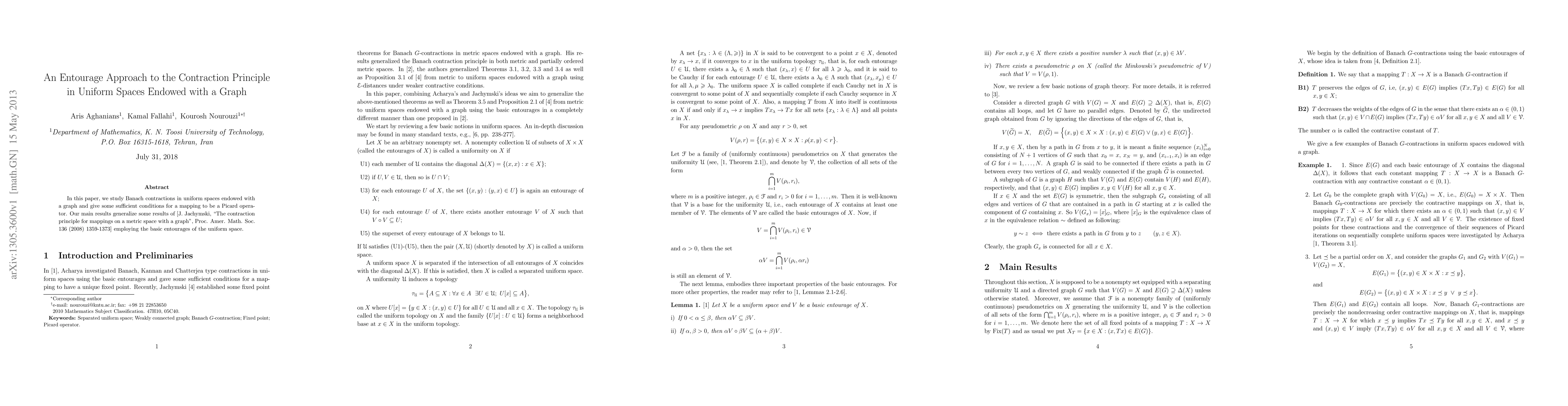 This paper generalizes Banach contraction principles in uniform spaces equipped with a graph, providing sufficient conditions for a mapping to be a Picard operator using entourages, extending prior results from metric spaces with graphs.