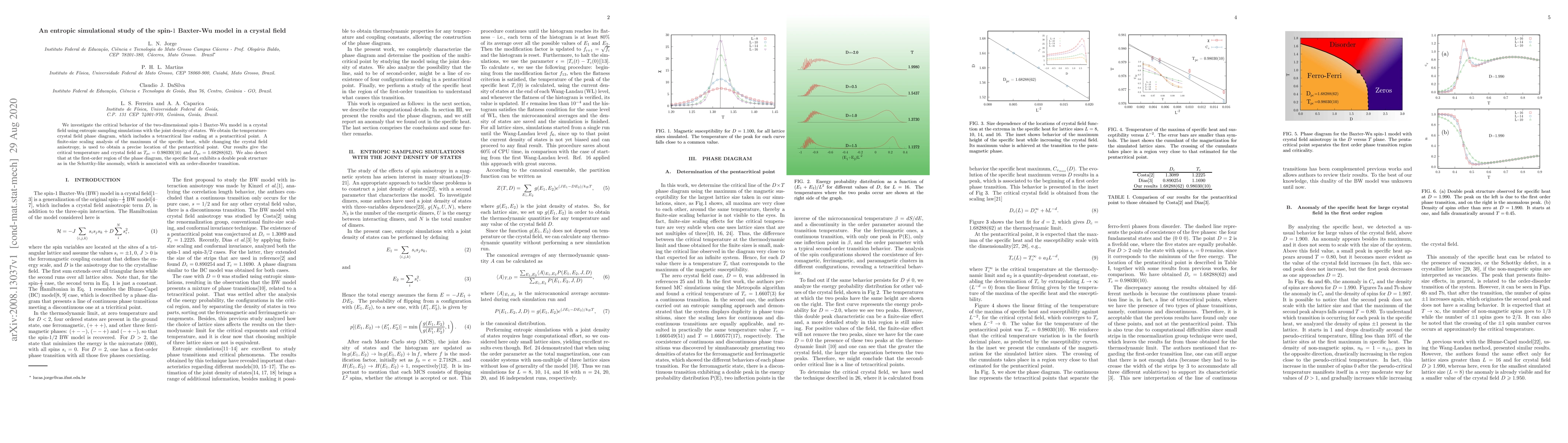 The research paper investigates the critical behavior of a 2D spin-1 model in a crystal field using entropic sampling simulations, revealing a tetracritical line ending at a pentacritical point with specific heat exhibiting a double peak structure.