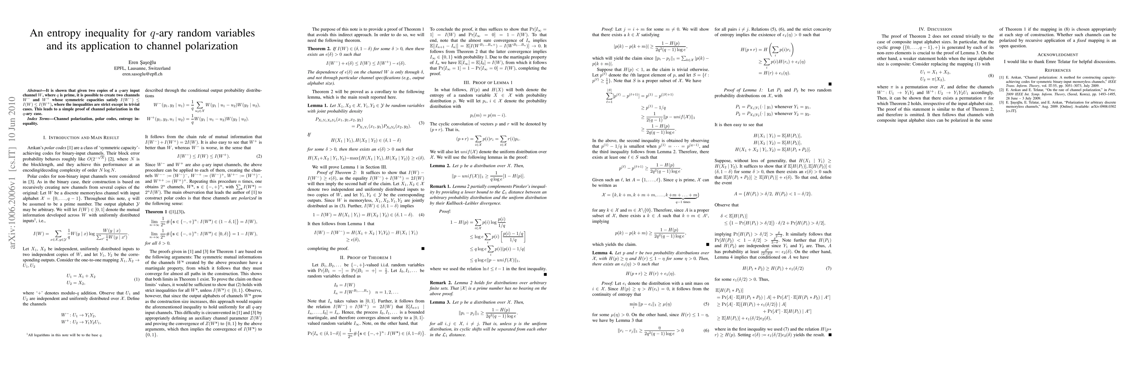 It is shown that given two copies of a q-ary input channel $W$, where q is prime, it is possible to create two channels $W^-$ and $W^+$ whose symmetric capacities satisfy $I(W^-)\le I(W)\le I(W^+)$, where the inequalities are strict except in trivial cases. This leads to a simple proof of channel polarization in the q-ary case.
