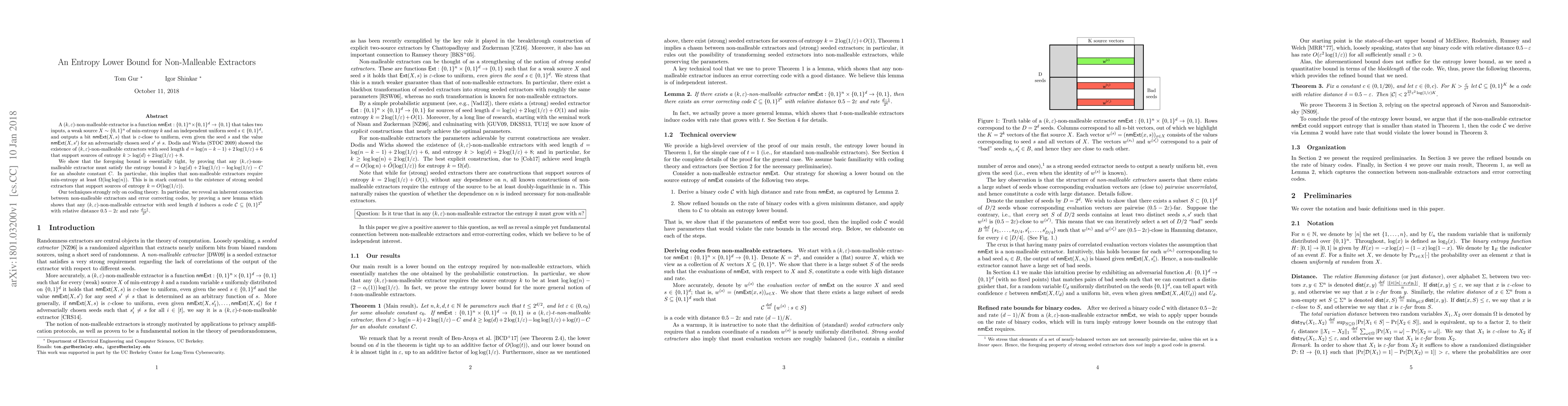 This paper establishes an entropy lower bound for $(k,\varepsilon)$-non-malleable extractors, showing that their min-entropy must satisfy $k > \log(d) + 2\log(1/\varepsilon) - \log\log(1/\varepsilon) - C$, demonstrating their need for min-entropy at least $\Omega(\log\log(n))$. The techniques involve connections to coding theory and error-correcting codes.