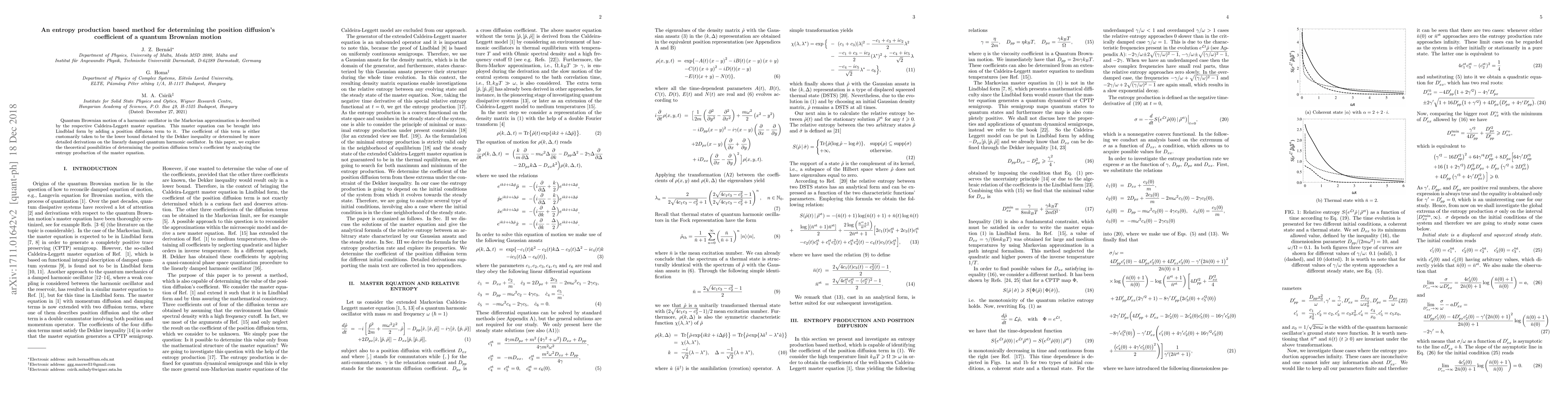 Quantum Brownian motion of a harmonic oscillator in the Markovian approximation is described by the respective Caldeira-Leggett master equation. This master equation can be brought into Lindblad form by adding a position diffusion term to it. The coefficient of this term is either customarily taken to be the lower bound dictated by the Dekker inequality or determined by more detailed derivations on the linearly damped quantum harmonic oscillator. In this paper, we explore the theoretical possibilities of determining the position diffusion term's coefficient by analyzing the entropy production of the master equation.