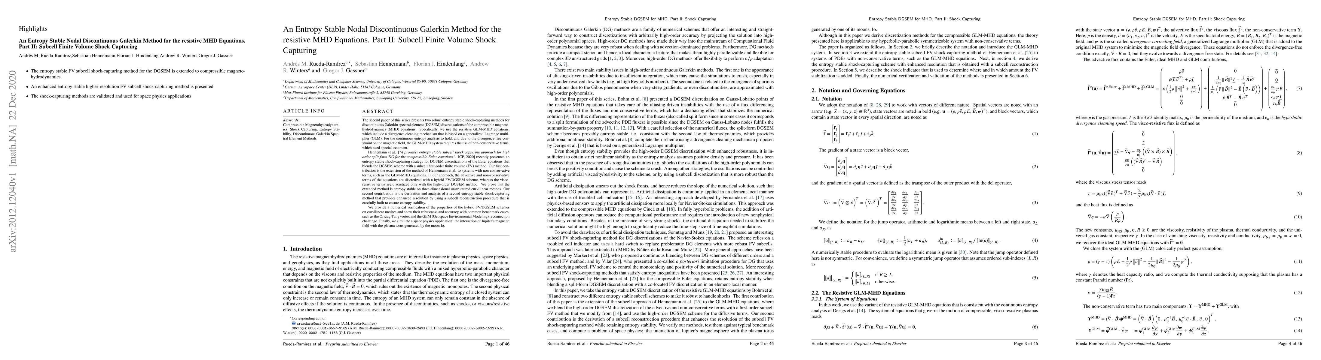 This paper extends an entropy stable shock-capturing method for DGSEM discretizations to resistive GLM-MHD equations, blending DGSEM with a subcell first-order finite volume method. It proves the method's entropy stability and demonstrates its robustness and accuracy through numerical benchmarks and a space physics application.