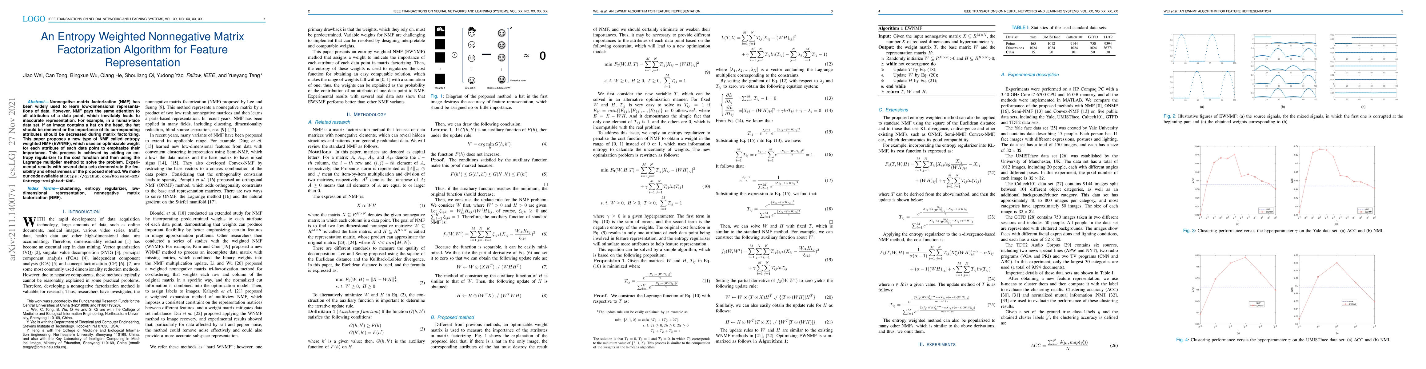 A new NMF algorithm called entropy weighted NMF (EWNMF) is proposed to address the issue of unequal importance given to attributes in data representation, achieving more accurate representations. Experimental results show its feasibility and effectiveness with several datasets.
