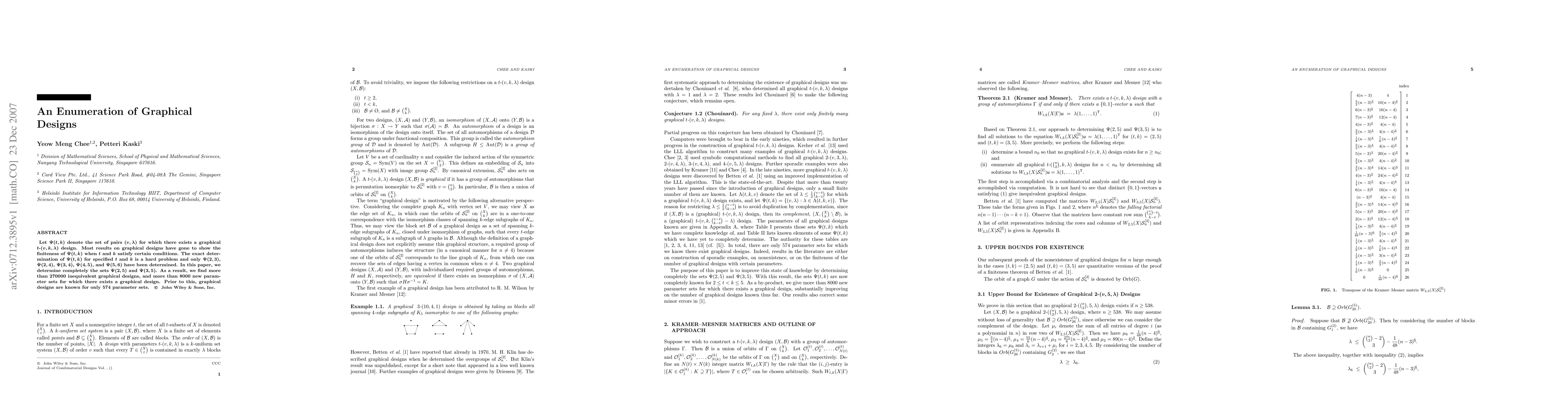 This paper enumerates the sets $\Psi(2,5)$ and $\Psi(3,5)$, identifying over 270,000 inequivalent graphical designs and more than 8,000 new parameter sets for graphical $t$-designs, significantly expanding the known number of such designs from 574 to over 278,000.