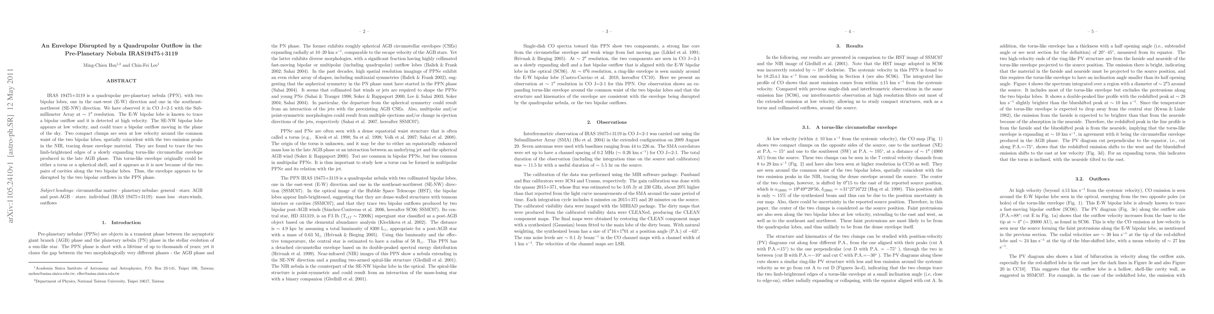 A quadrupolar pre-planetary nebula shows disrupted envelope material due to two bipolar outflows, suggesting a complex interaction between the outflows and the surrounding circumstellar envelope.