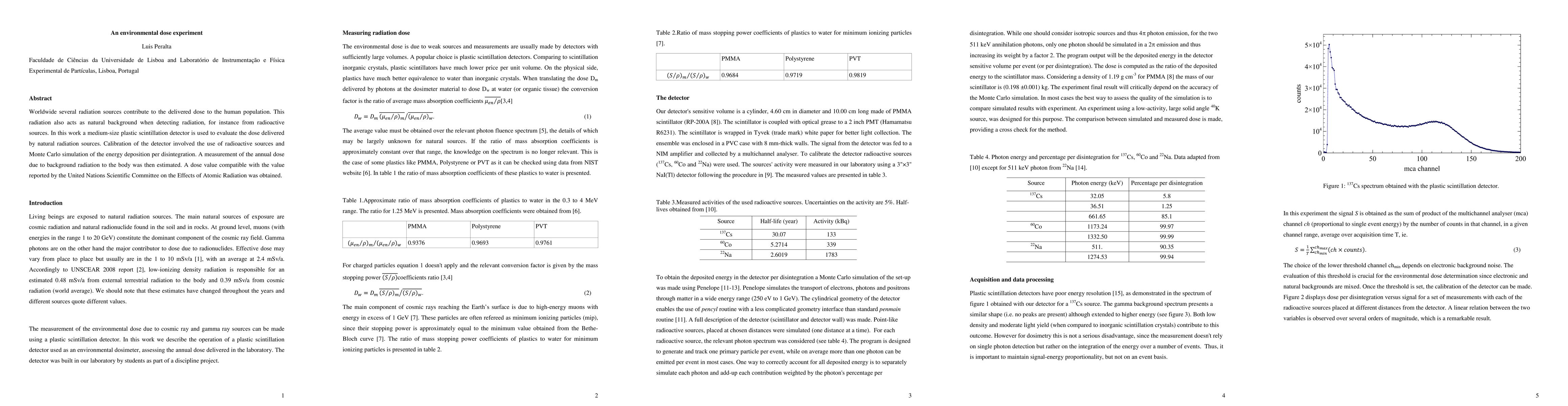 Researchers used a plastic scintillation detector to measure natural background radiation doses, obtaining results consistent with UN scientific estimates. The study provides a method for evaluating environmental radiation sources.