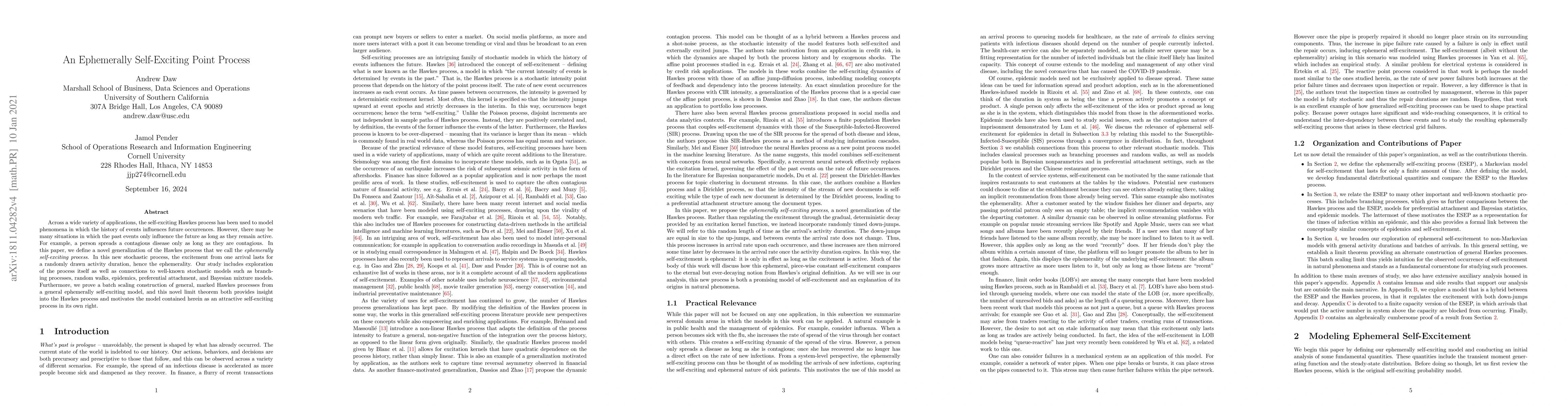 This paper introduces the ephemerally self-exciting process, a novel generalization of the Hawkes process, where past events influence future occurrences only while they remain active. The study explores its connections to various stochastic models and proves a batch scaling construction, providing new insights into the self-exciting process.