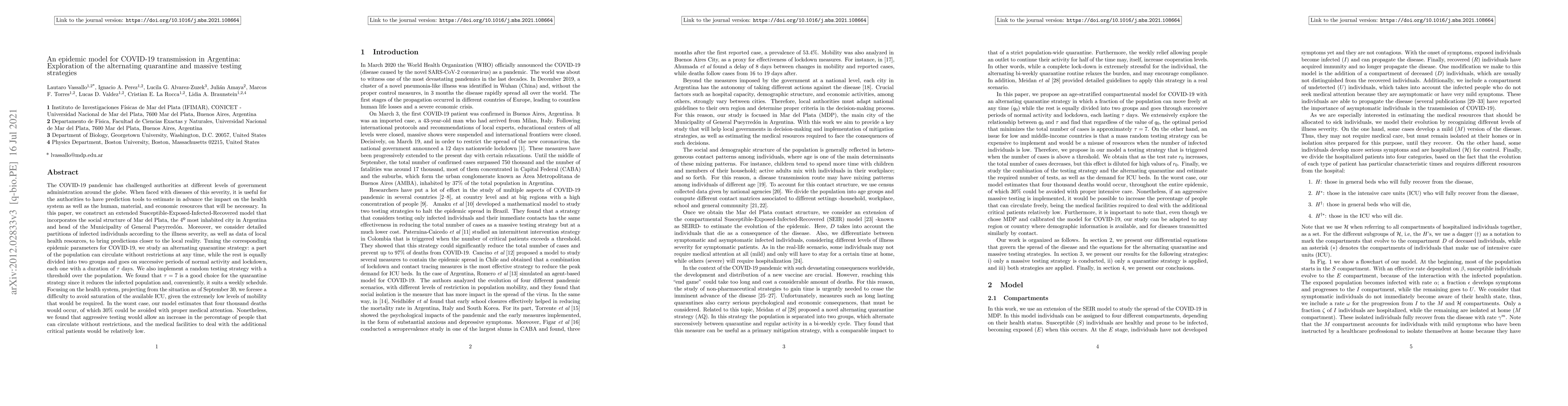 A modeling study in Argentina estimates that a 7-day quarantine strategy and aggressive testing could avoid up to 30% of COVID-19 deaths, but ICU saturation remains a concern.