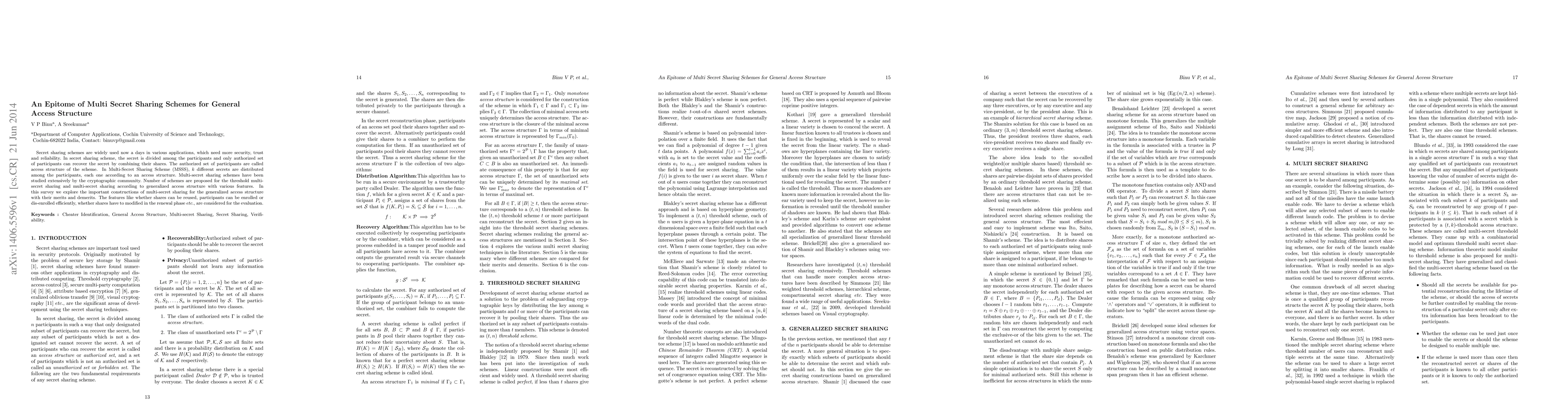 Secret sharing schemes are widely used now a days in various applications, which need more security, trust and reliability. In secret sharing scheme, the secret is divided among the participants and only authorized set of participants can recover the secret by combining their shares. The authorized set of participants are called access structure of the scheme. In Multi-Secret Sharing Scheme (MSSS), k different secrets are distributed among the participants, each one according to an access structure. Multi-secret sharing schemes have been studied extensively by the cryptographic community. Number of schemes are proposed for the threshold multi-secret sharing and multi-secret sharing according to generalized access structure with various features. In this survey we explore the important constructions of multi-secret sharing for the generalized access structure with their merits and demerits. The features like whether shares can be reused, participants can be enrolled or dis-enrolled efficiently, whether shares have to modified in the renewal phase etc., are considered for the evaluation.