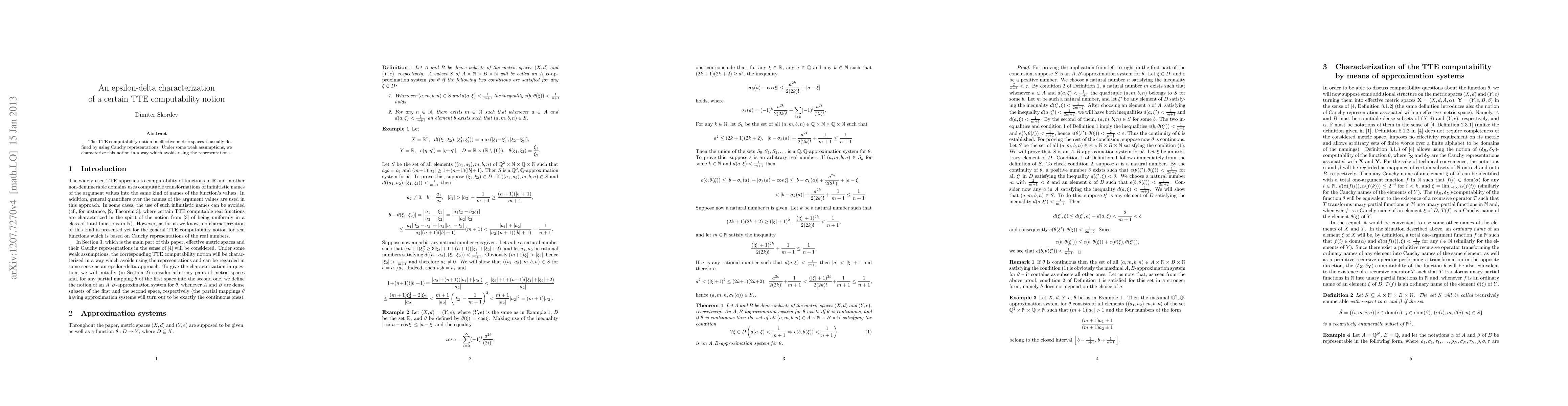 The TTE computability notion in effective metric spaces is usually defined by using Cauchy representations. Under some weak assumptions, we characterize this notion in a way which avoids using the representations.