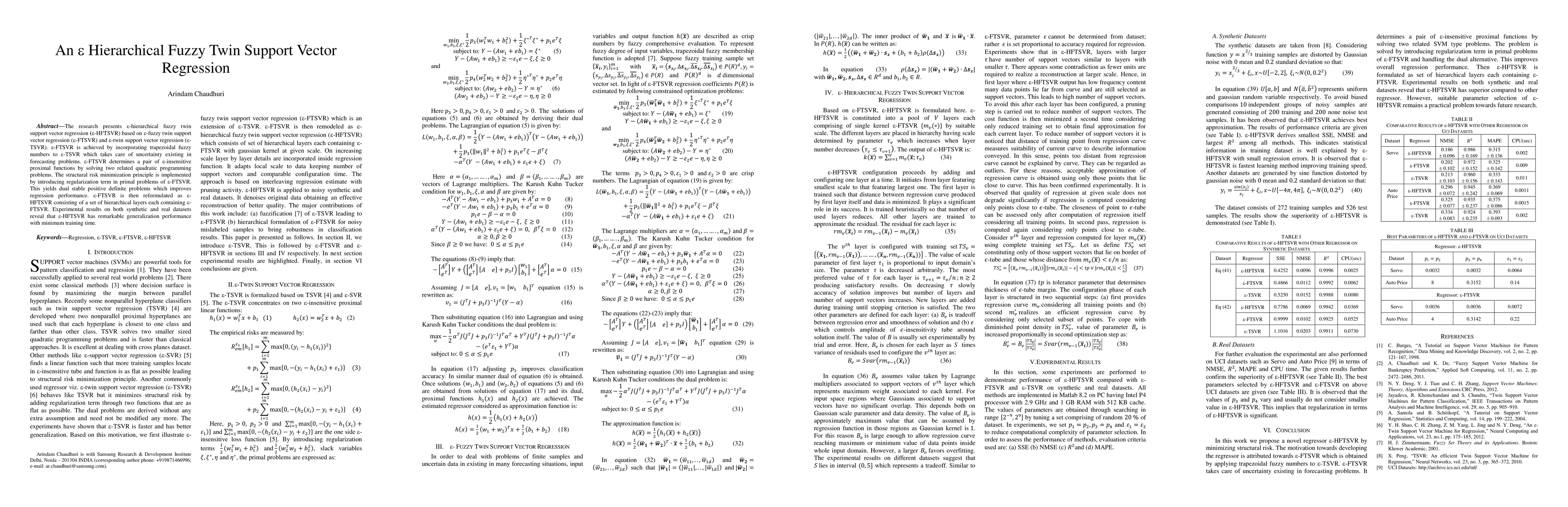 This paper introduces epsilon hierarchical fuzzy twin support vector regression (epsilon HFTSVR), combining epsilon fuzzy twin support vector regression (epsilon FTSVR) and epsilon twin support vector regression to handle forecasting uncertainties. The method enhances regression performance through hierarchical layers and structural risk minimization, showing superior generalization and efficiency in experiments.