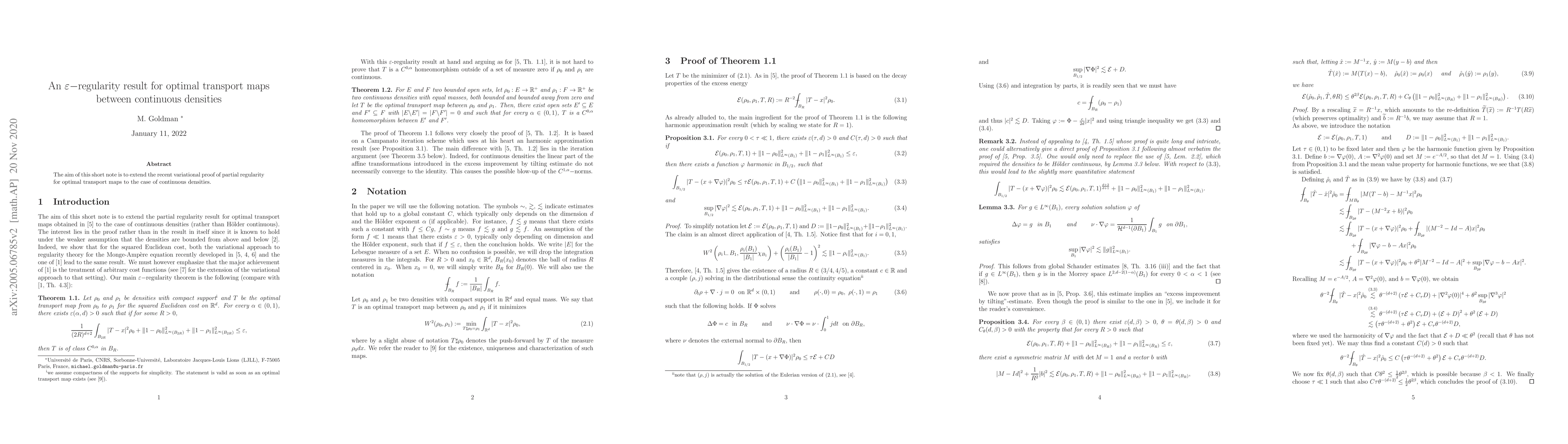 Summary: This paper extends the variational proof of partial regularity for optimal transport maps to continuous densities, contributing to the understanding of regularity properties in optimal transport theory.
