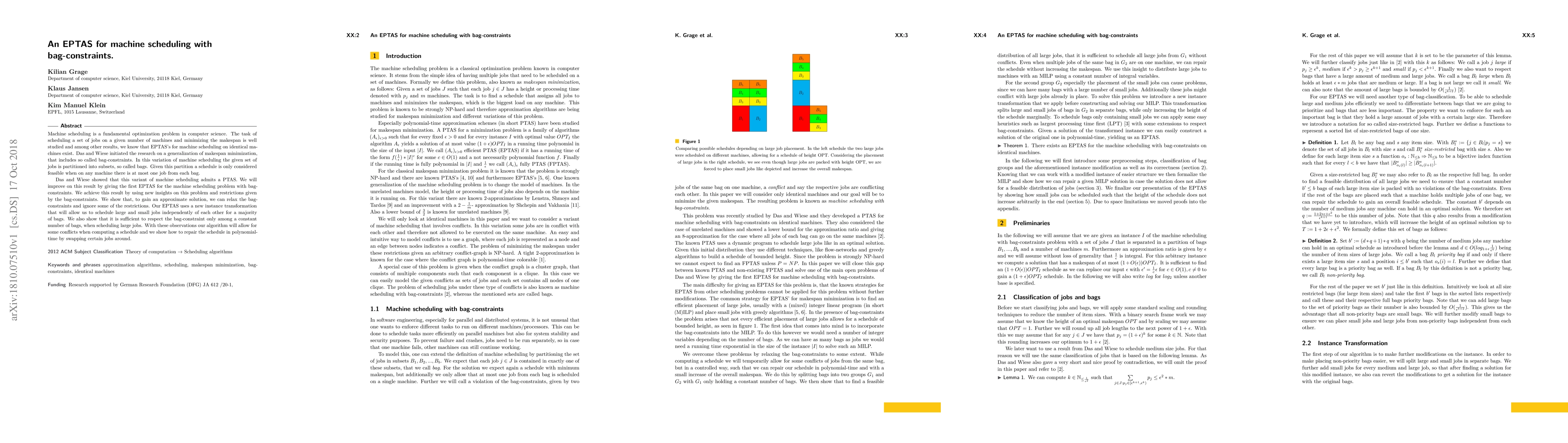 This paper introduces an efficient approximation scheme (EPTAS) for scheduling jobs on machines with bag-constraints, improving upon previous results in machine scheduling optimization.