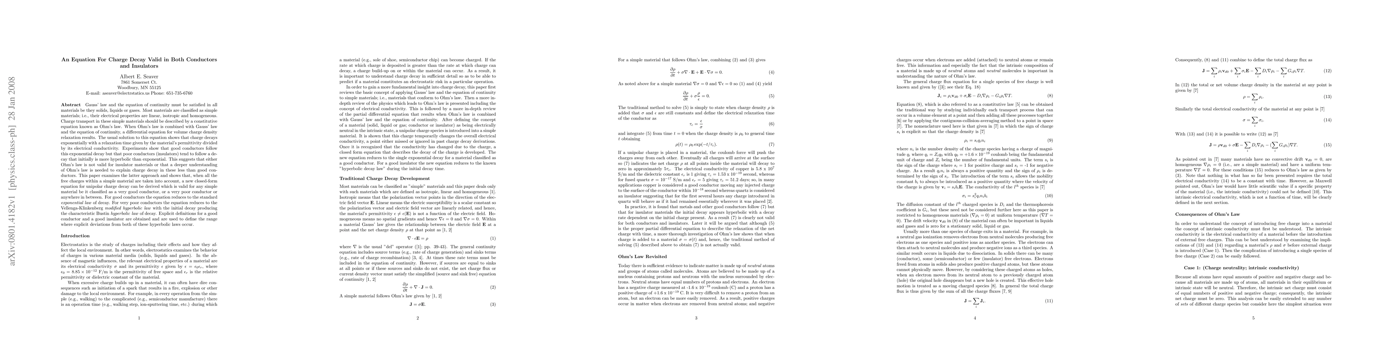 Gauss' law and the equation of continuity must be satisfied in all materials be they solids, liquids or gases. Most materials are classified as simple materials; i.e., their electrical properties are linear, isotropic and homogeneous. Charge transport in these simple materials should be described by a constitutive equation known as Ohm's law. When Ohm's law is combined with Gauss' law and the equation of continuity, a differential equation for volume charge density relaxation results. The usual solution to this equation shows that charge decays exponentially with a relaxation time given by the material's permittivity divided by its electrical conductivity. Experiments show that good conductors follow this exponential decay but that poor conductors (insulators) tend to follow a decay that initially is more hyperbolic than exponential. This suggests that either Ohm's law is not valid for insulator materials or that a deeper understanding of Ohm's law is needed to explain charge decay in these less than good conductors. This paper examines the latter approach and shows that, when all the free charges within a simple material are taken into account, a new unipolar charge decay equation is derived which is valid for any simple material: conductor, insulator or anywhere in between. For good conductors the equation reduces to the standard exponential law of decay. For very poor conductors it reduces to the Vellenga-Klinkenberg modified hyperbolic law with the initial decay producing the characteristic Bustin hyperbolic law of decay. Explicit definitions for a good conductor and a good insulator are obtained and are used to define the range where explicit deviations from both of these hyperbolic laws occur.