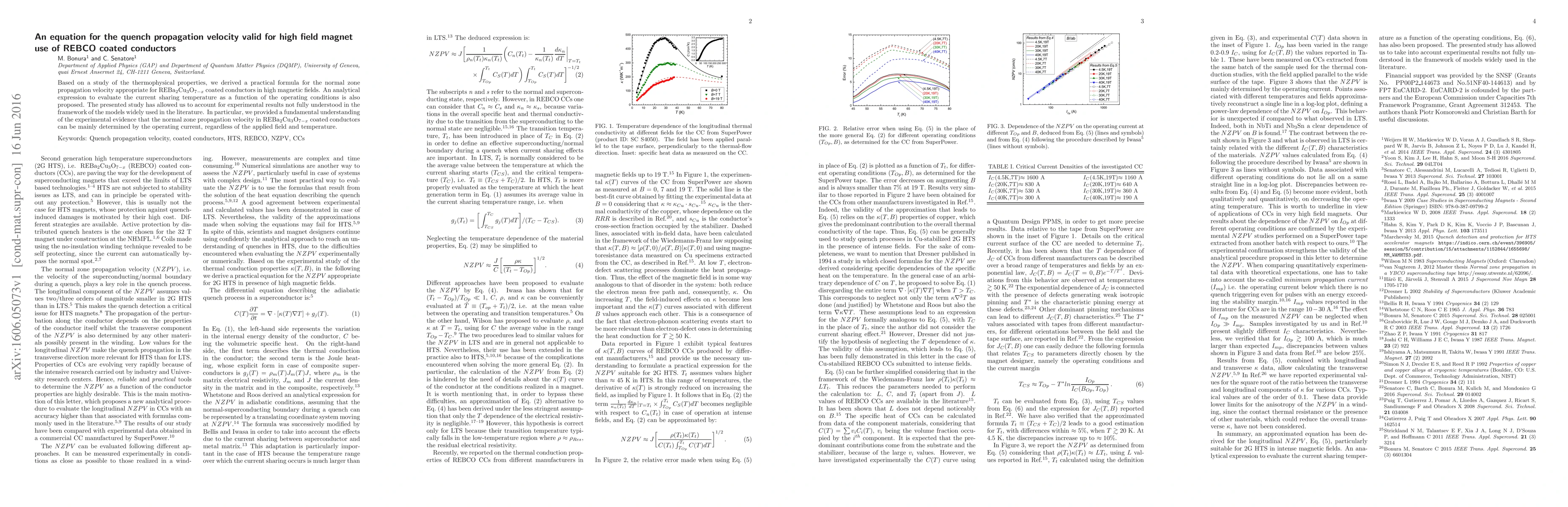 Based on a study of the thermophysical properties, we derived a practical formula for the normal zone propagation velocity appropriate for REBa$_2$Cu$_3$O$_{7-x}$ coated conductors in high magnetic fields. An analytical expression to evaluate the current sharing temperature as a function of the operating conditions is also proposed. The presented study has allowed us to account for experimental results not fully understood in the framework of the models widely used in the literature. In particular, we provided a fundamental understanding of the experimental evidence that the normal zone propagation velocity in REBa$_2$Cu$_3$O$_{7-x}$ coated conductors can be mainly determined by the operating current, regardless of the applied field and temperature.