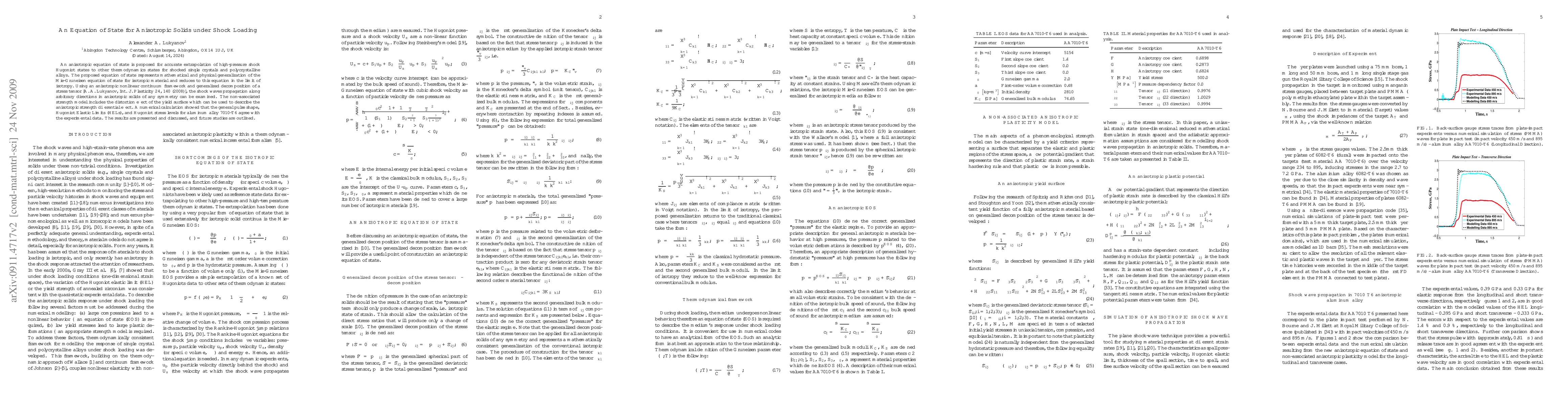 This paper proposes an anisotropic equation of state for accurately modeling high-pressure shock states in single crystals and polycrystalline alloys. It generalizes the Mie-Grüneisen equation and uses a nonlinear continuum framework to examine shock wave propagation in anisotropic solids, showing good agreement with experimental data for aluminum alloy 7010-T6.