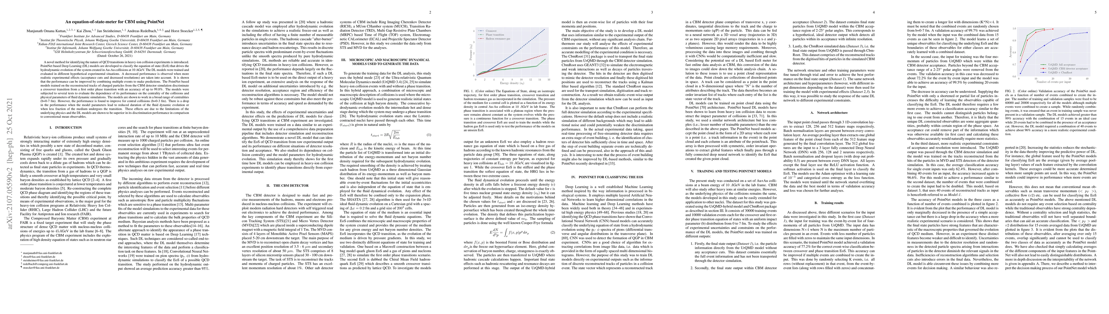 A novel method for identifying the nature of QCD transitions in heavy-ion collision experiments is introduced. PointNet based Deep Learning (DL) models are developed to classify the equation of state (EoS) that drives the hydrodynamic evolution of the system created in Au-Au collisions at 10 AGeV. The DL models were trained and evaluated in different hypothetical experimental situations. A decreased performance is observed when more realistic experimental effects (acceptance cuts and decreased resolutions) are taken into account. It is shown that the performance can be improved by combining multiple events to make predictions. The PointNet based models trained on the reconstructed tracks of charged particles from the CBM detector simulation discriminate a crossover transition from a first order phase transition with an accuracy of up to 99.8%. The models were subjected to several tests to evaluate the dependence of its performance on the centrality of the collisions and physical parameters of fluid dynamic simulations. The models are shown to work in a broad range of centralities (b=0-7 fm). However, the performance is found to improve for central collisions (b=0-3 fm). There is a drop in the performance when the model parameters lead to reduced duration of the fluid dynamic evolution or when less fraction of the medium undergoes the transition. These effects are due to the limitations of the underlying physics and the DL models are shown to be superior in its discrimination performance in comparison to conventional mean observables.