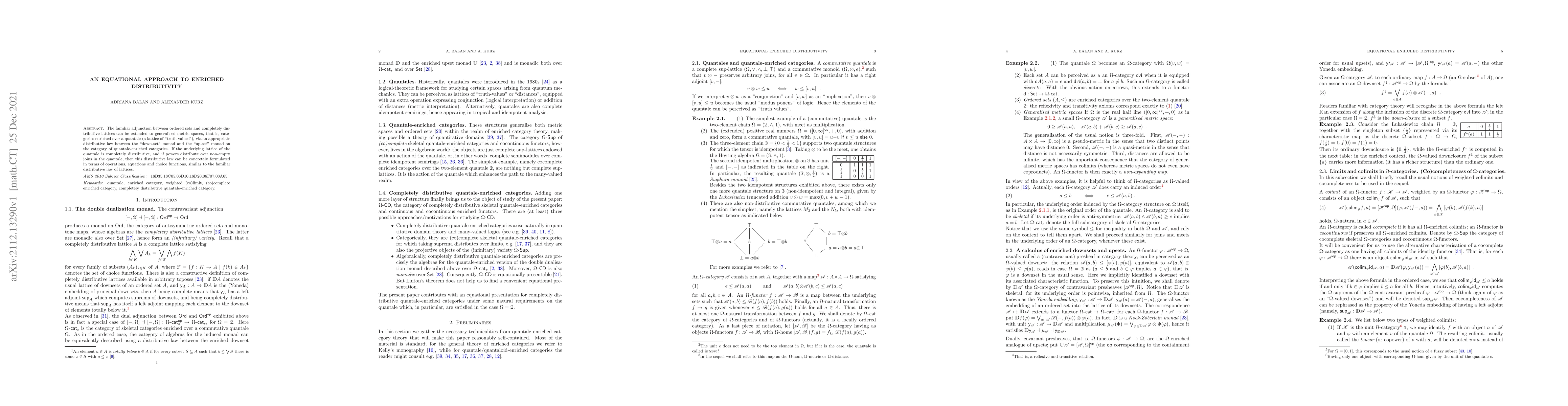 Researchers extend the adjunction between ordered sets and completely distributive lattices to generalized metric spaces enriched over a quantale, enabling a concrete formulation of a distributive law in terms of operations and equations.