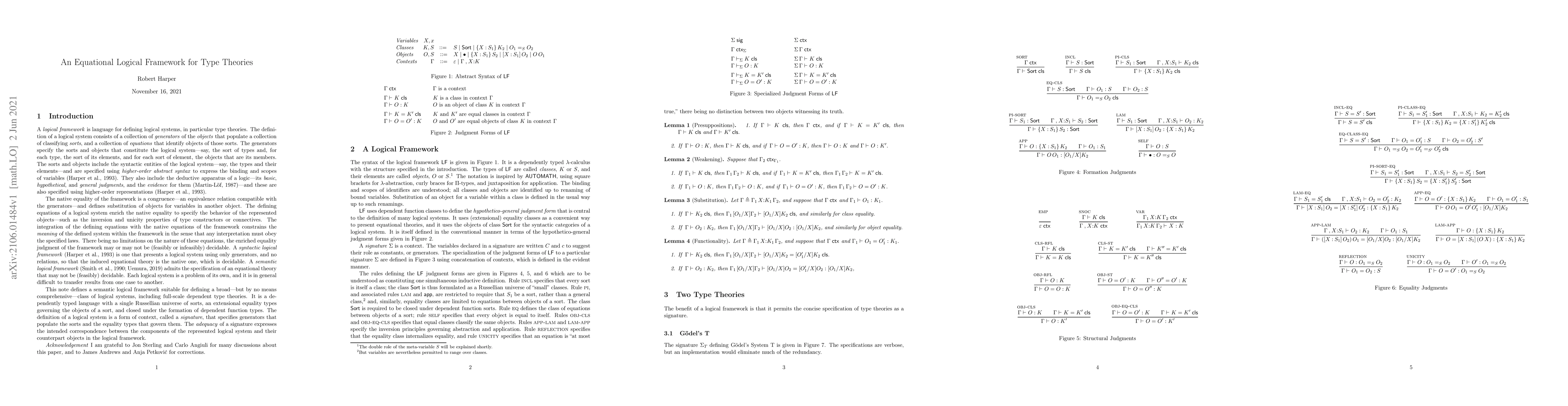 This paper presents a logical framework for intuitionistic type theories based on equational theories, extending Martin-Löf's foundational work and Uemura's initiality results, with an inclusion of an extensional equality type and illustrated through examples like identity and equality types.