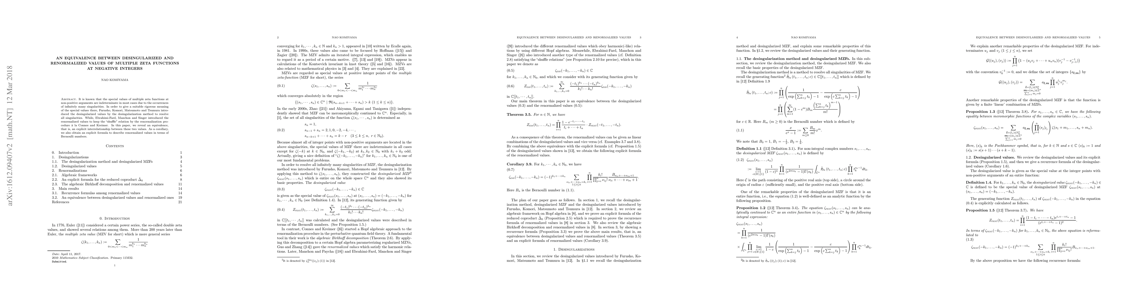 It is known that the special values of multiple zeta functions at non-positive arguments are indeterminate in most cases due to the occurrences of infinitely many singularities. In order to give a suitable rigorous meaning of the special values there, Furusho, Komori, Matsumoto and Tsumura introduced the desingularized values by the desingularization method to resolve all singularities. While, Ebrahimi-Fard, Manchon and Singer introduced the renormalized values to keep the "shuffle" relation by the renormalization procedure \`a la Connes and Kreimer. In this paper, we reveal an equivalence, that is, an explicit interrelationship between these two values. As a corollary, we also obtain an explicit formula to describe renormalized values in terms of Bernoulli numbers.