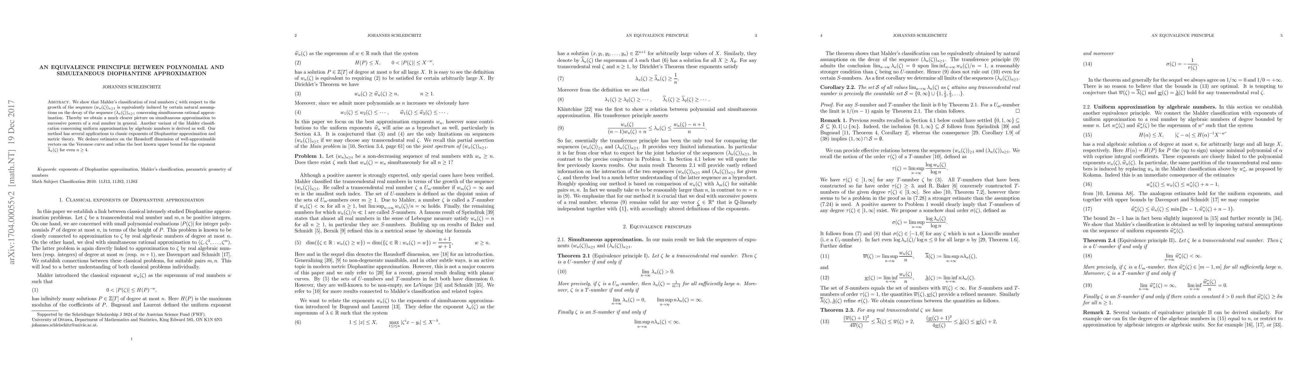 Researchers establish an equivalence between Mahler's classification of real numbers for polynomial approximation and simultaneous Diophantine approximation, shedding light on the growth rates of certain sequences.