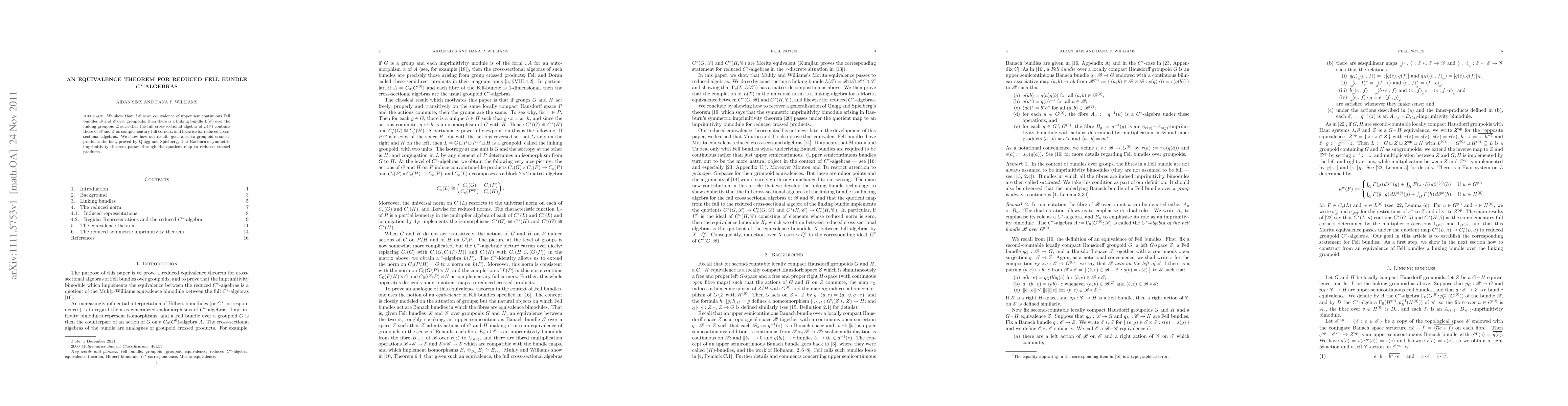 This paper establishes an equivalence theorem for reduced Fell bundle C*-algebras, demonstrating that an equivalence of Fell bundles induces a linking bundle whose cross-sectional algebra contains the original algebras as complementary full corners, generalizing a result from symmetric imprimitivity theory to groupoid crossed-products.