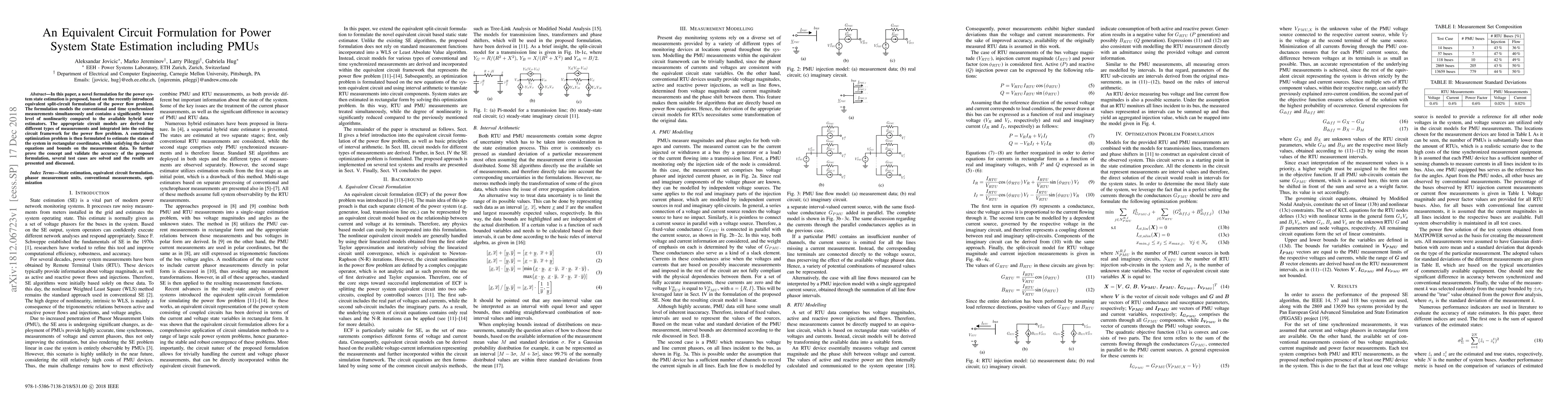 This paper proposes a novel equivalent circuit formulation for power system state estimation, integrating both conventional and synchronized measurements with reduced nonlinearity. The method formulates a constrained optimization problem to estimate system states while satisfying circuit equations and measurement bounds, validated through test cases.