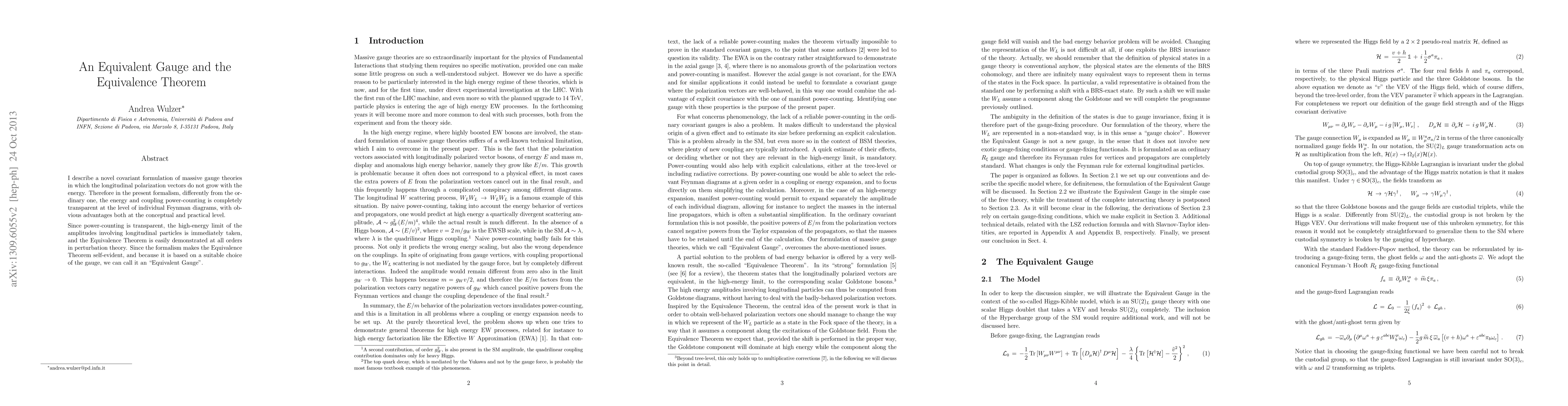 I describe a novel covariant formulation of massive gauge theories in which the longitudinal polarization vectors do not grow with the energy. Therefore in the present formalism, differently from the ordinary one, the energy and coupling power-counting is completely transparent at the level of individual Feynman diagrams, with obvious advantages both at the conceptual and practical level. Since power-counting is transparent, the high-energy limit of the amplitudes involving longitudinal particles is immediately taken, and the Equivalence Theorem is easily demonstrated at all orders in perturbation theory. Since the formalism makes the Equivalence Theorem self-evident, and because it is based on a suitable choice of the gauge, we can call it an "Equivalent Gauge".