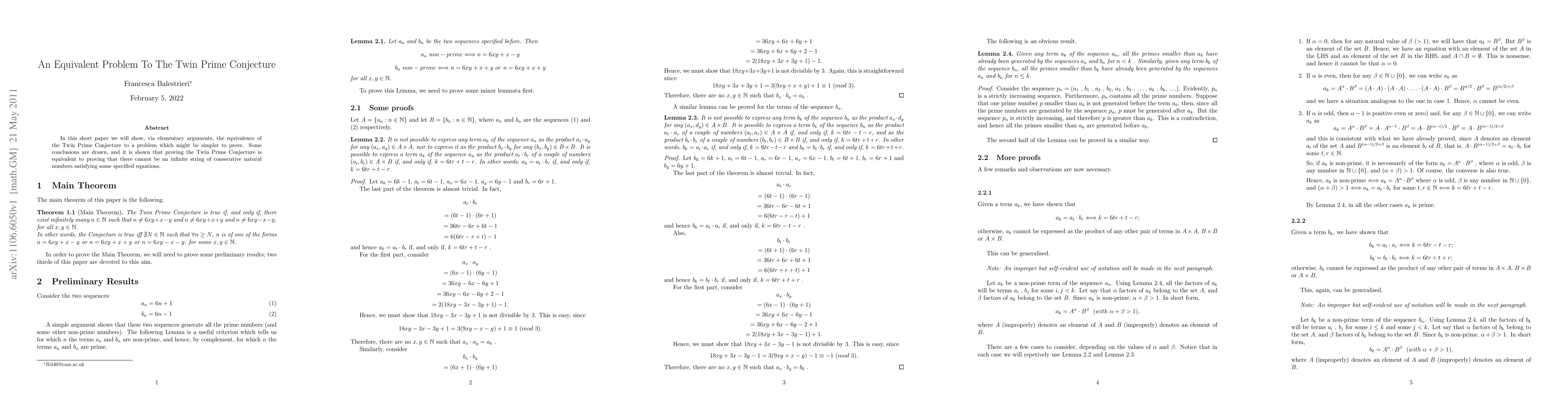Summary: This paper demonstrates the equivalence of the Twin Prime Conjecture to a potentially simpler problem involving consecutive natural numbers and specified equations, suggesting that proving either is equivalent to proving the other.