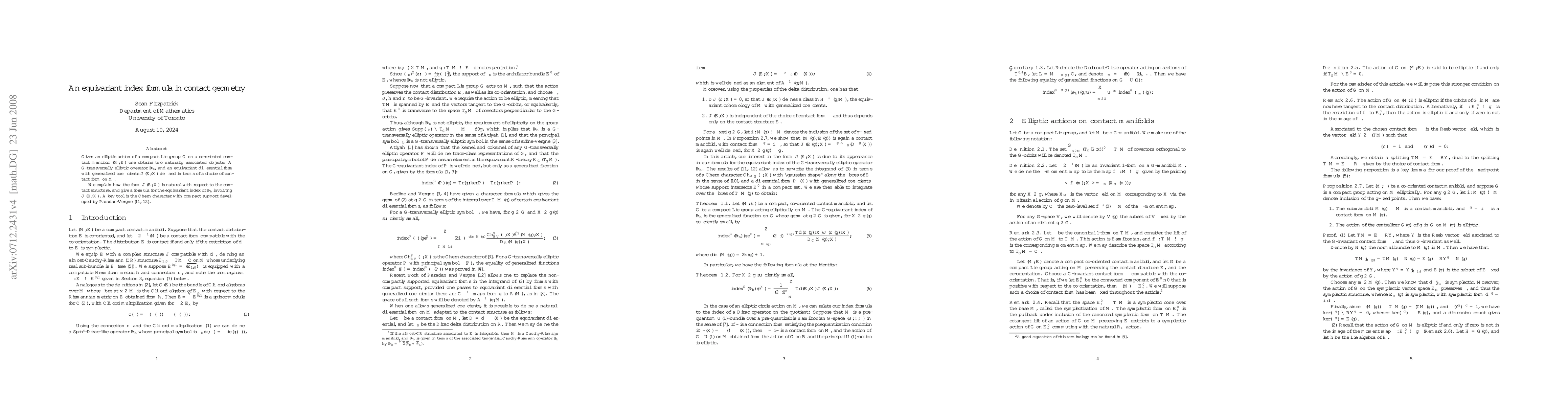 Researchers develop an equivariant index formula for elliptic actions on contact manifolds, providing a way to calculate the index of a transversally elliptic operator using a natural differential form with generalized coefficients.