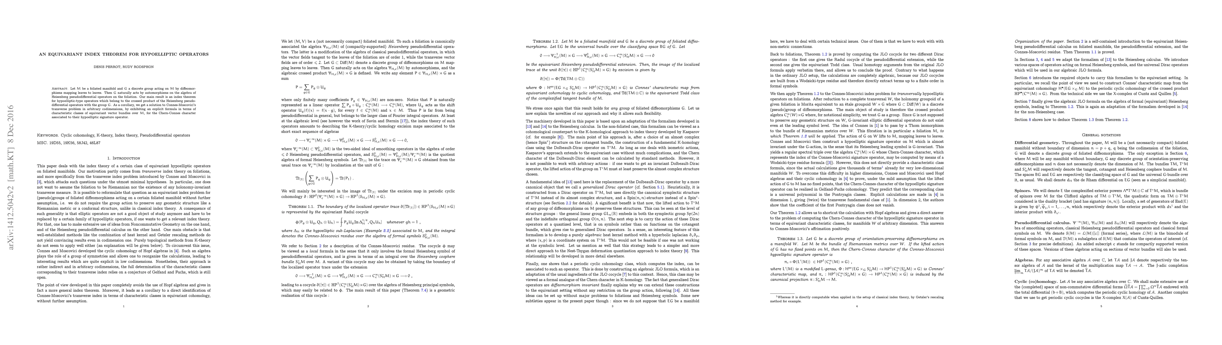 Let M be a foliated manifold and G a discrete group acting on M by diffeomorphisms mapping leaves to leaves. Then G naturally acts by automorphisms on the algebra of Heisenberg pseudodifferential operators on the foliation. Our main result is an index theorem for hypoelliptic-type operators which belong to the crossed product of the Heisenberg pseudodifferential operators with the group G. As a corollary, we get a solution to Connes-Moscovici's transverse problem in arbitrary codimensions, by exhibiting an explicit formula in terms of characteristic classes of equivariant vector bundles over M, for the Chern-Connes character associated to their hypoelliptic signature operator.