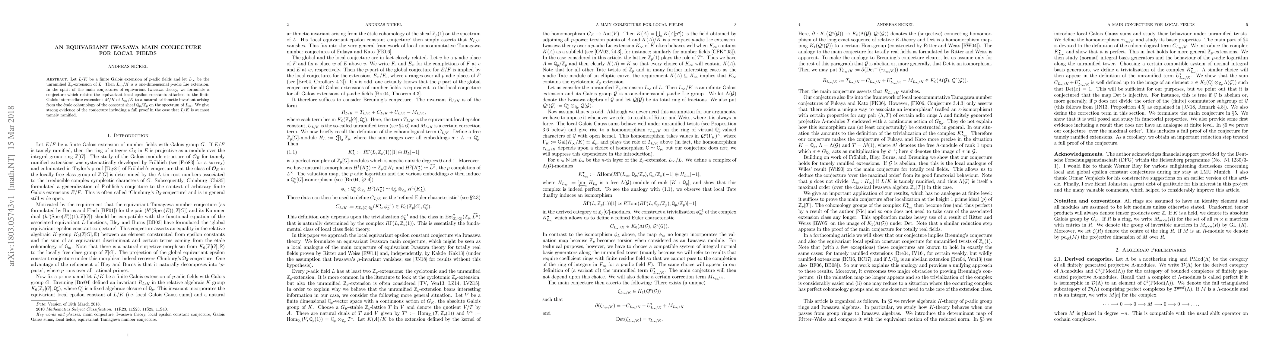 This paper formulates an equivariant Iwasawa main conjecture for local fields, connecting equivariant local epsilon constants to arithmetic invariants from étale cohomology. A full proof is provided for tamely ramified extensions.