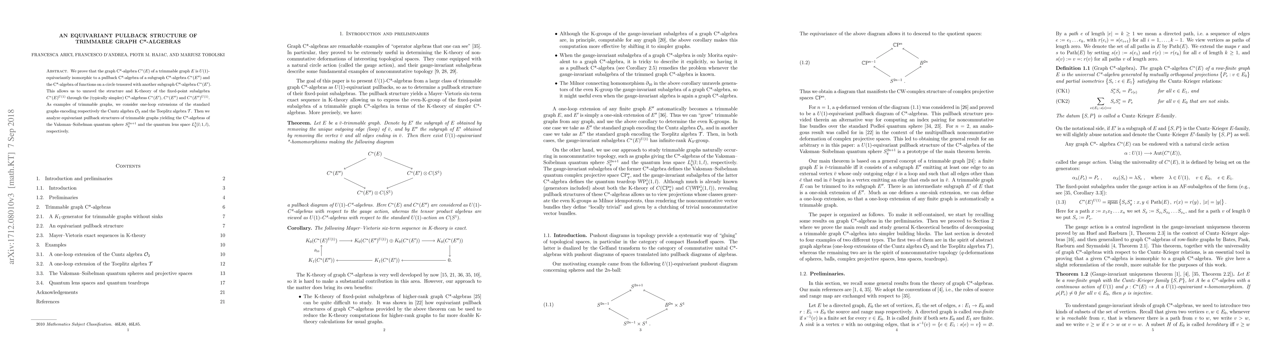 This research demonstrates that the graph C*-algebra of a trimmable graph is equivariantly isomorphic to a pullback structure involving simpler subgraph C*-algebras, facilitating an analysis of its fixed-point subalgebra and K-theory. Examples include one-loop extensions related to Cuntz and Toeplitz algebras, and applications to quantum sphere and lens space C*-algebras.