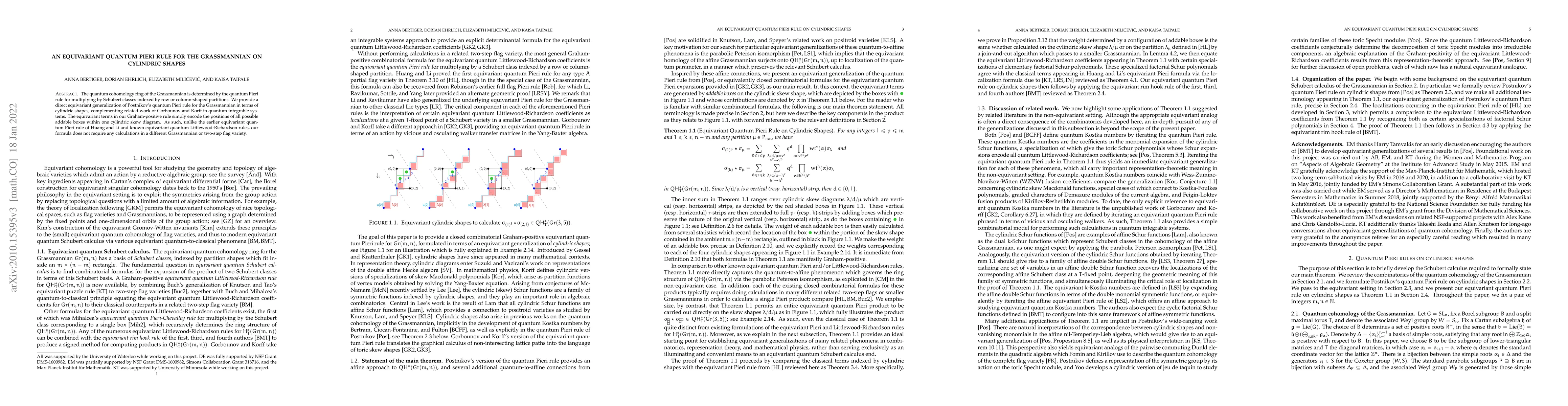 Summary: This paper presents an equivariant quantum Pieri rule for the Grassmannian, extending Postnikov's rule using cylindric shapes. Unlike previous methods, it directly encodes the positions of addable boxes in a Graham-positive formula without requiring calculations in different Grassmannians or flag varieties.