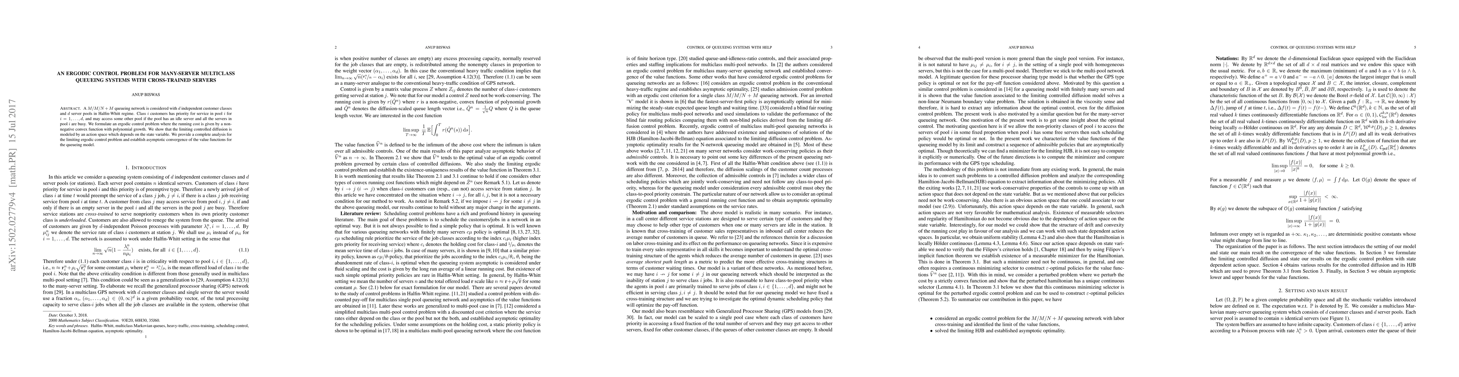 The paper presents a detailed analysis of an ergodic control problem for many-server multiclass queueing systems, providing conditions for the existence and uniqueness of solutions to the associated HJB equations.