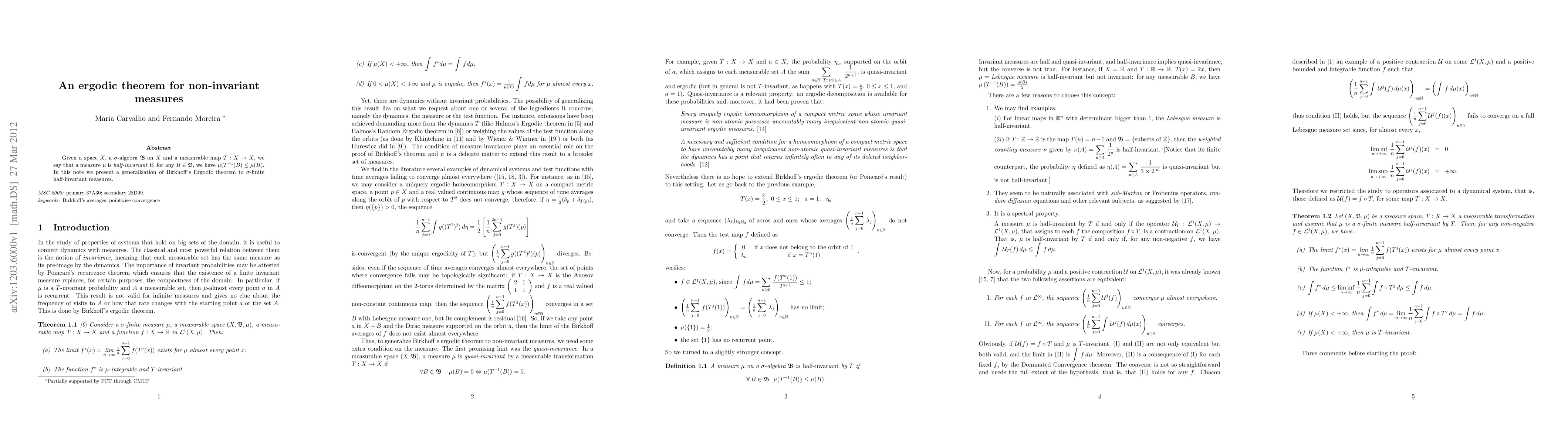Researchers extend Birkhoff's Ergodic theorem to non-invariant measures, providing a generalization for half-invariant measures in sigma-finite spaces.