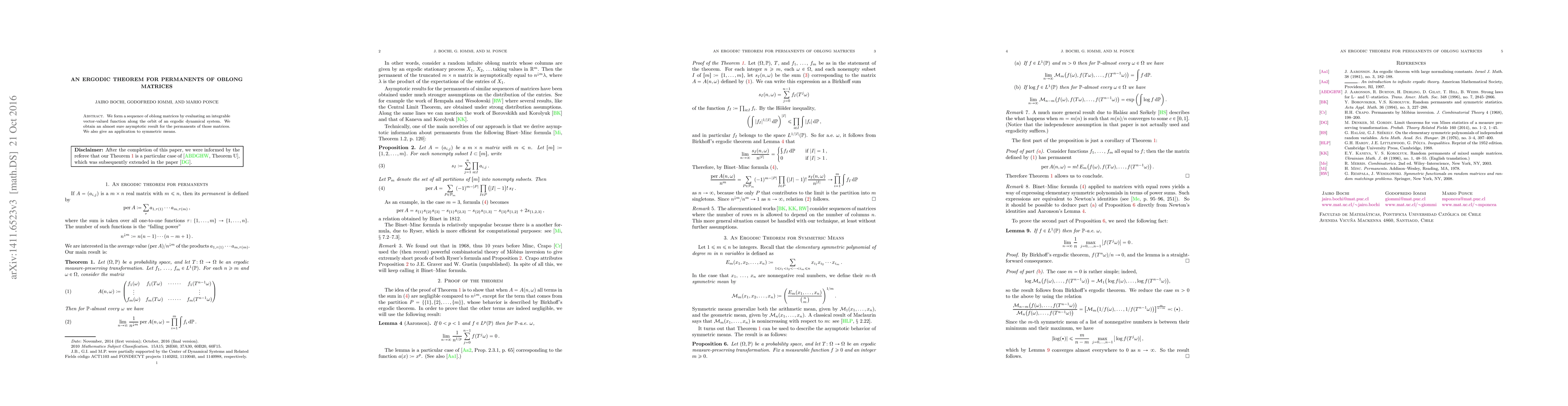 Researchers develop an ergodic theorem for oblong matrices, showing that permanents of these matrices exhibit almost sure asymptotic behavior when evaluated along the orbit of an ergodic dynamical system.