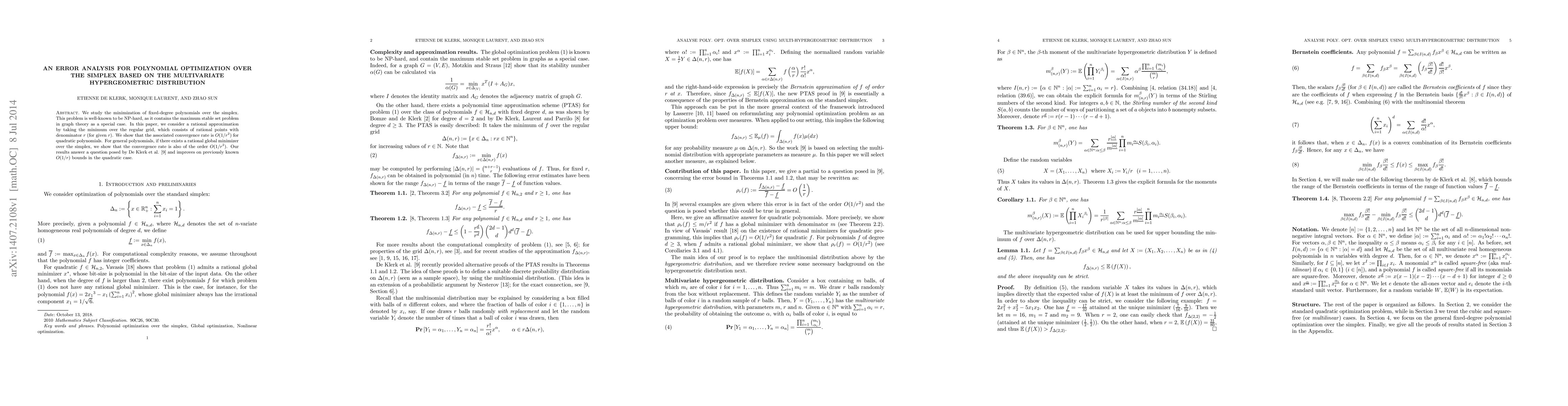 This research paper analyzes polynomial optimization over the simplex using a rational approximation method, showing improved convergence rates for both quadratic and general polynomials with $O(1/r^2)$.