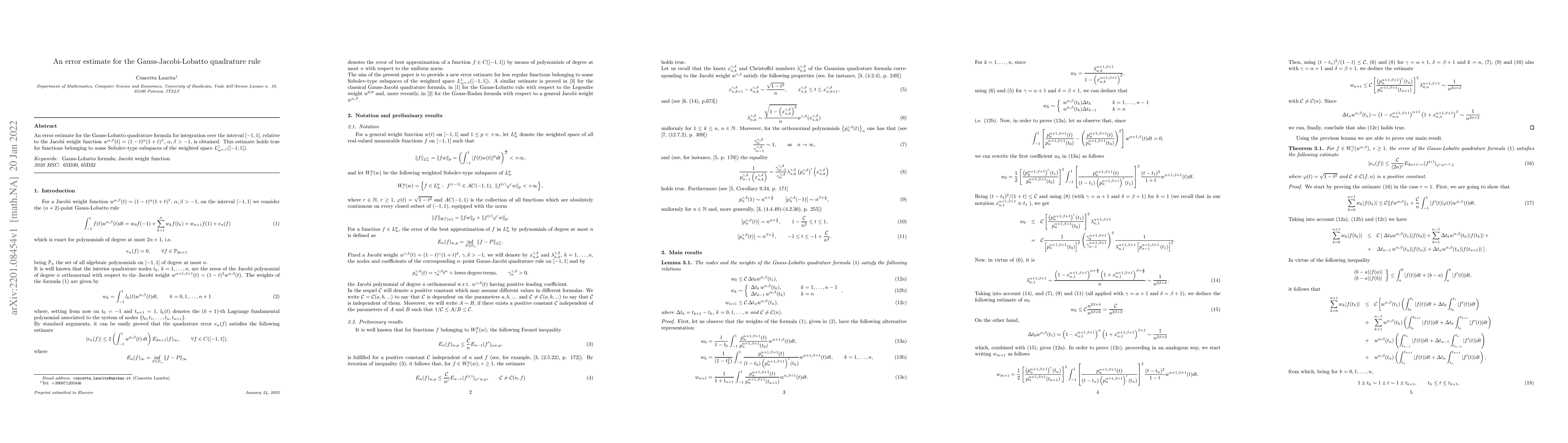 This paper provides an error estimate for the Gauss-Jacobi-Lobatto quadrature rule, which integrates functions over the interval $[-1, 1]$ with respect to the Jacobi weight function. The estimate applies to functions in specific Sobolev-type subspaces of the weighted space $L_{w^{\alpha,\beta}}^1([-1,1])$.