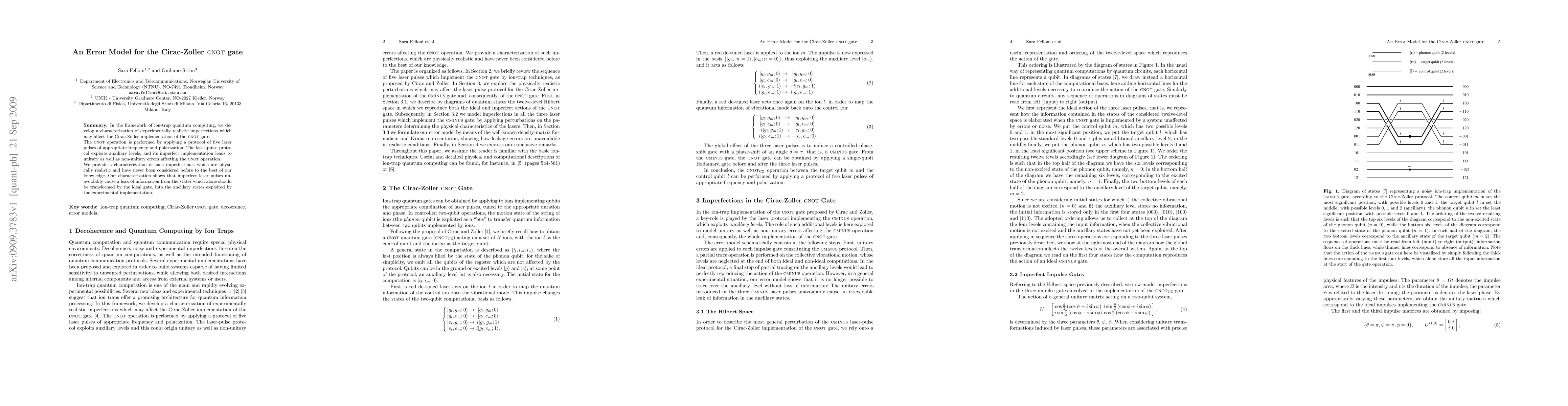 This paper develops an error model for the Cirac-Zoller CNOT gate in ion-trap quantum computing, identifying realistic imperfections from imperfect laser pulses that cause both unitary and non-unitary errors, leading to information leakage into ancillary states. The study highlights previously unconsidered, physically realistic imperfections in the gate implementation.